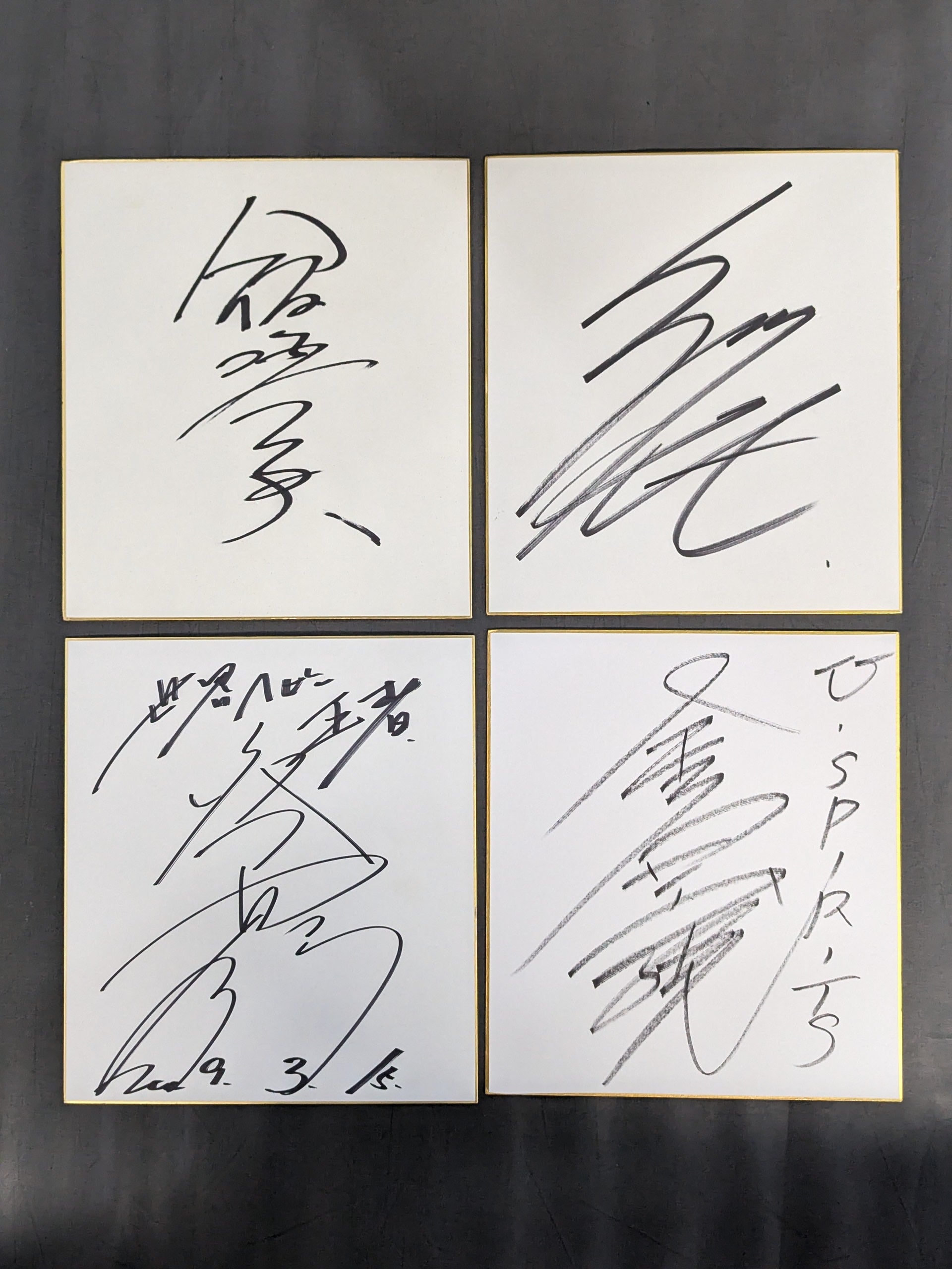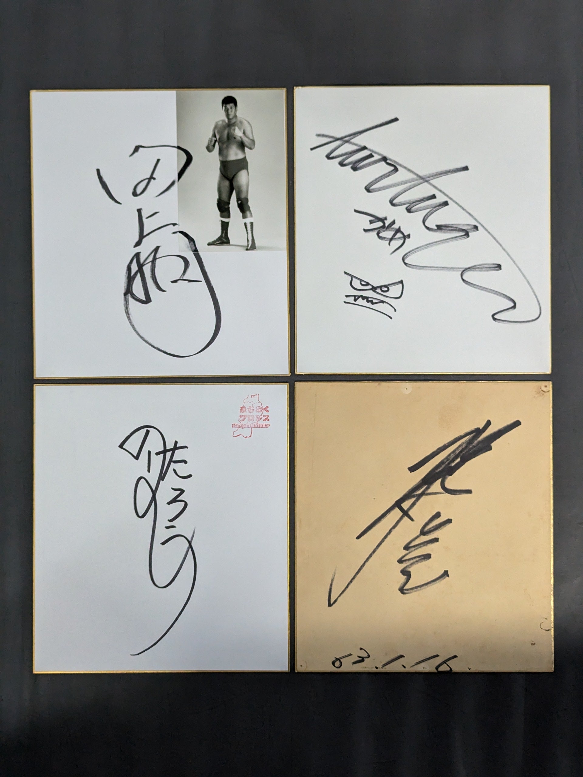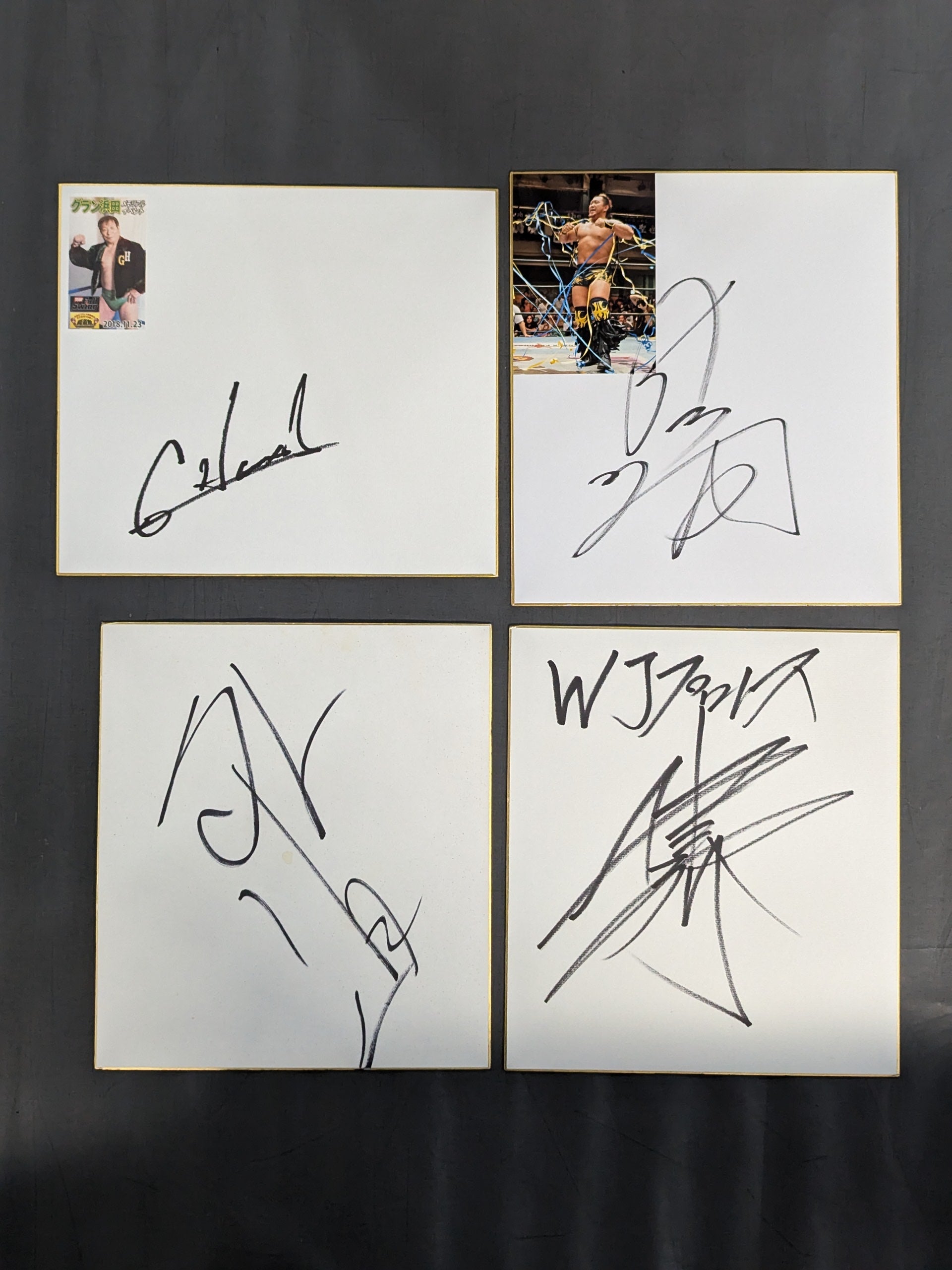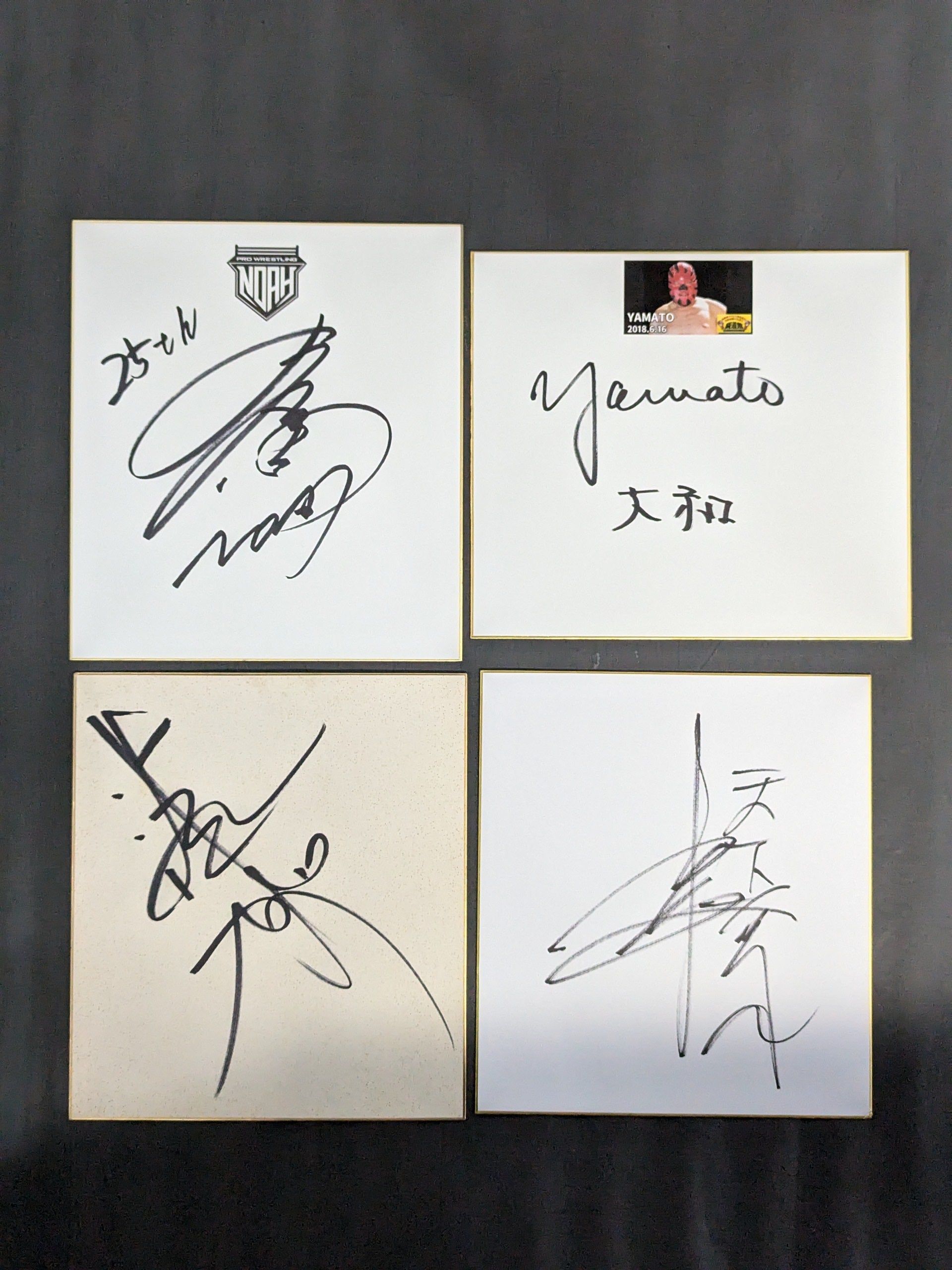 Takashi Iizuka , Kota Ibushi , Shinjiro Otani , Hiromitsu Kanehara, Gran Hamada , GEDO , Shuji Kondo , Kensuke Sasaki , Jado , Shogun KY Wakamatsu (×2), Akira Taue (×2), Tortuga , Tarou Nohashi , Hiroshi Hase , Naomichi Marufuji , YAMATO (Kim Duk ), Yoshiaki Yatsu , Yoshitatsu, , More than 20 hand signed autograph Shikishi ( Autograph board ) set!
