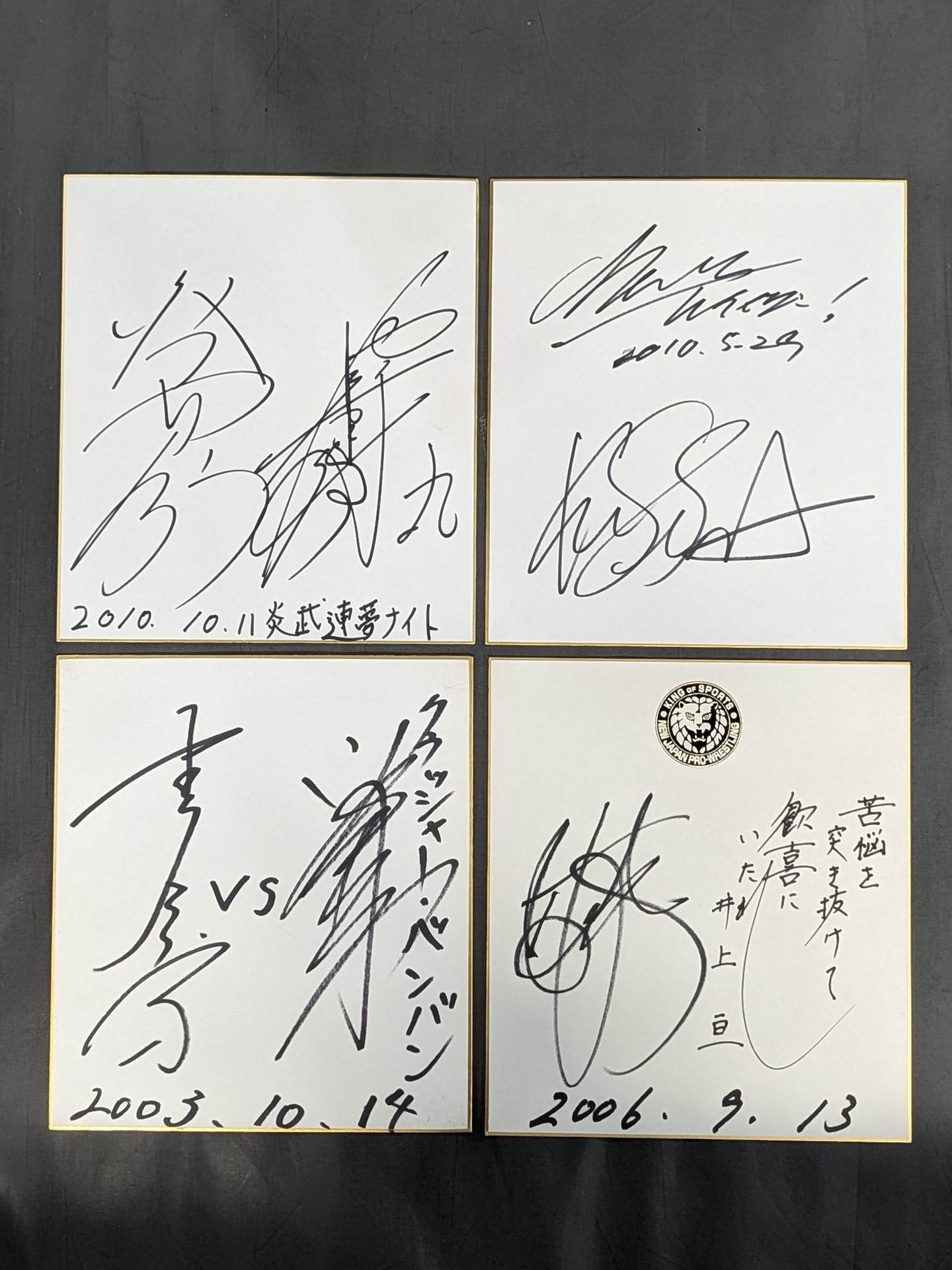 Soma Takao & Masahiro Takanashi & Akihito, Jun Izumida & Shoichi Ichinomiya, Atsushi Aoki & KENTA, Jun Akiyama & KENTA, Shinjiro Otani & Masato Tanaka , Hajime Ohara & KUSHIDA, Shigeo Okumura & Crusher Bambang Hirai (Nobuyazu Hirai), Koji Kanemoto &Wataru Inoue (Lion Mark Shikishi ( Autograph board ) ), Tsuyoshi Kikuchi & Junsuke Izumida, Takao Omori & Manabu Soya , KENTA & Taiji Ishimori , KENTA & Takashi Sugiura, Masayuki Kono & Masakatsu Funaki , Hirooki Goto &Go Shiozaki , Hirooki Goto & Masato Tanaka , Hirooki Goto & Ryusuke Taguchi, Hirooki Goto & Minoru, Satoshi Kojima & Manabu Nakanishi , Kenta Kobashi & Daisuke Hashimoto &Ryuji Ito , Billyken Kid & Tigers Mask, Daisuke Hashimoto & Takumi Seiya, 4th Tiger Mask & Atsushi Aoki, Masashi Takeda & Shuji Ishikawa, Ryusuke Taguchi & Yohei Komatsu, Masato Tanaka &Yuji Nagata , Shuhei Taniguchi& Go Shiozaki & Takashi Sugiura & Atsushi Aoki, Daiki Niiwa & Yoshiya Yamashita & Takashi Uwano, Tomoaki Honma & Kazushi Miyamoto, Togi Makabe & Hirooki Goto , Togi Makabe & Ryusuke Taguchi , more than 30 pieces hand signed autograph Shikishi ( Autograph board ) It's a set!