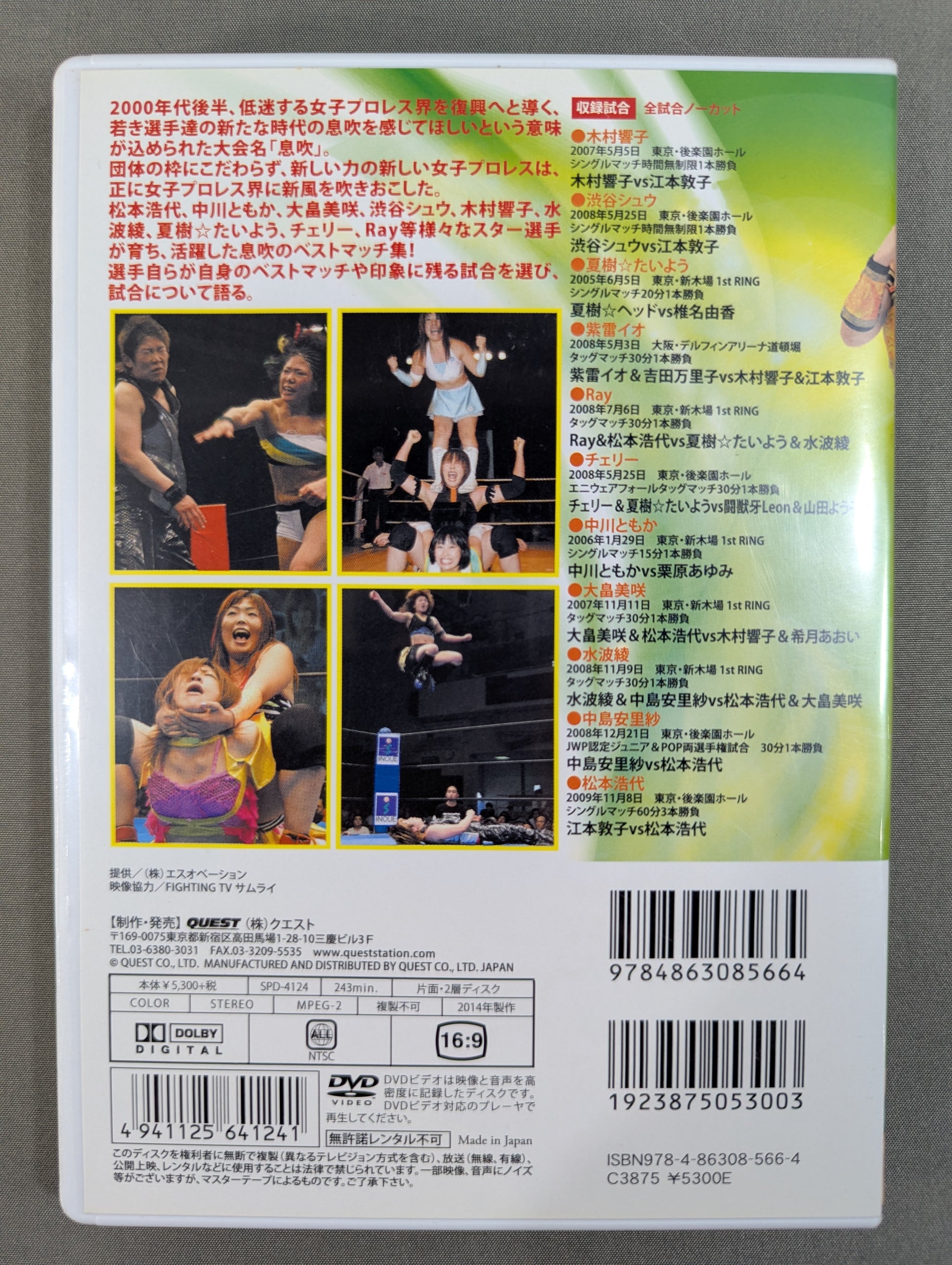 In the late 2000s, the name of the tournament "Breath" is intended to help young fighters who lead the sluggish women's professional wrestling world to revival in a new era. Regardless of the framework of promotion, the new women's Pro Wrestling with new power is truly the women's Pro Wrestling It has blown a new wind in the world. Hiroyo Matsumoto, Tomoka Nakagawa, Misaki Ohata, Shu Shibuya, Kyoko Kimura, Ryo Mizunami , Natsuki ☆ Taiyo, Cherry, Ray and other star fighters grew up, A collection of the best matches of the breath that was active! fighters themselves choose their best matches and memorable matches and talk about the matches.