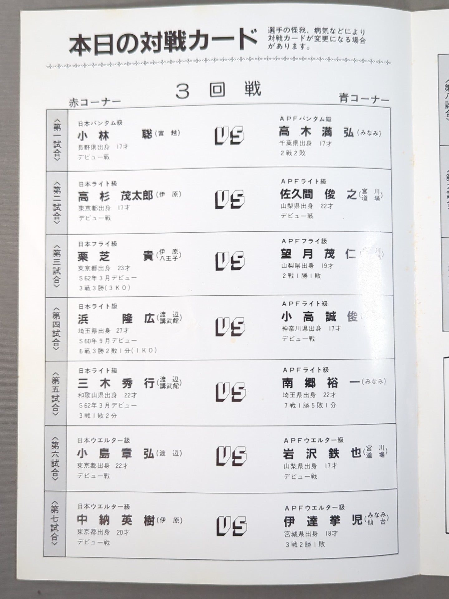 Venue: Korakuen Hall / list of the matches is printed : [Satoshi Kobayashi debut match] Satoshi Kobayashi vs Mitsuhiro Takagi