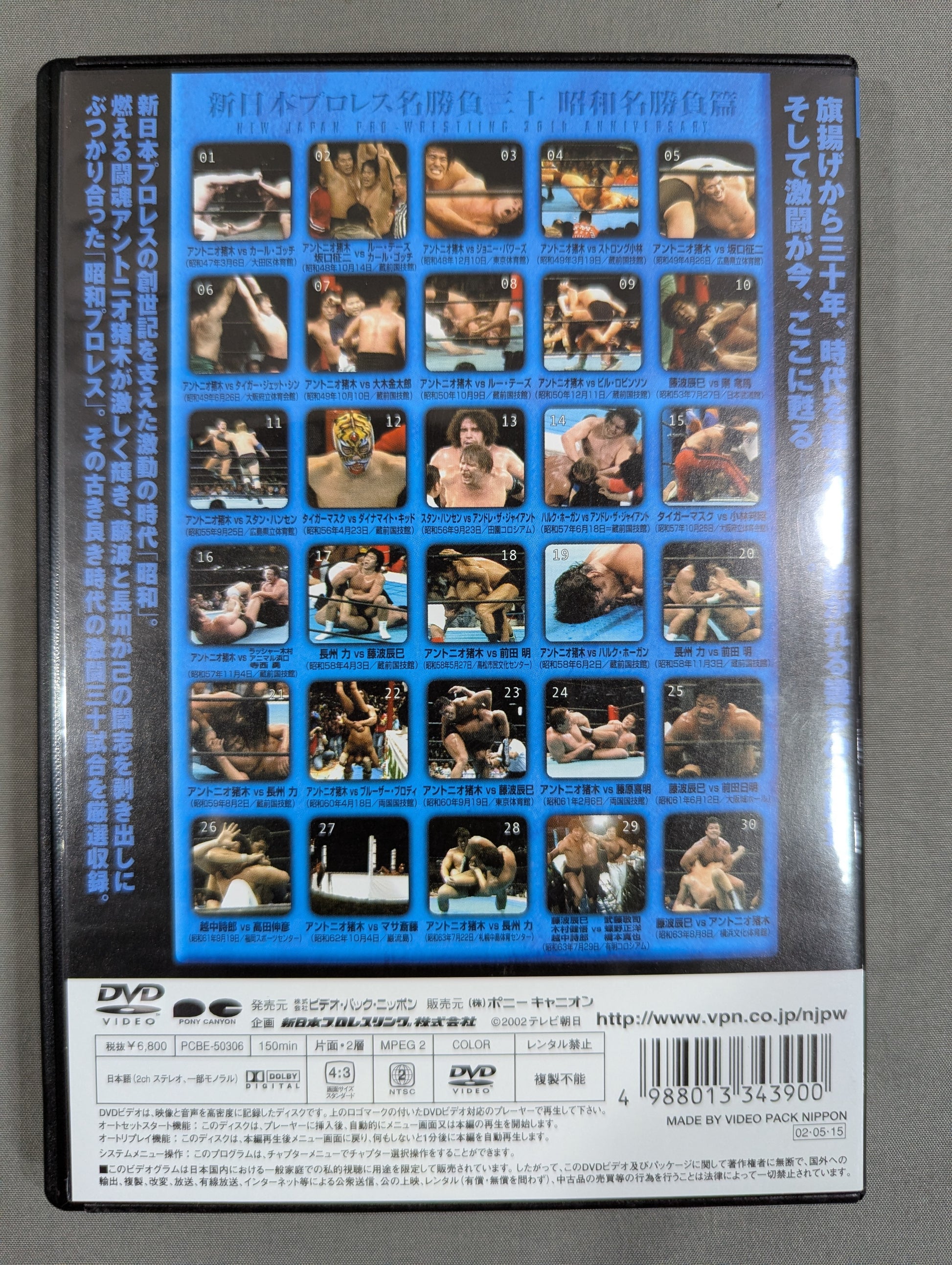 Antonio Inoki broke away from the Japanese Pro Wrestling , but in 1972 New Japan Pro Wrestling . As the top major in the Japanese Pro Wrestling world, New Japan has played many famous matches and has featured various star players A DVD that is the culmination of 30 years of history. 4 works: Showa Famous Match, Heisei Famous Match, Mixed Martial Arts Edition, and Treasured Famous Match! ! Thirty years after the flag was raised, many famous matches and fierce battles that have been passed down through the ages are now revived here. ■Showa Famous Matches The turbulent era "Showa" that supported the creation of New Japan Pro Wrestling. The burning fighting spirit Antonio Inoki shines fiercely, and Fujinami and Riki Choshu collide with each other to expose their fighting spirit. Pro Wrestling ". Carefully selected 30 fierce battles of the good old days. ■Heisei Famous Matches The era has shifted from the Showa era to the Heisei era, and men who inherit the genes of burning fighting spirit build the history of New Japan Pro Wrestling. The Three Musketeers, the third generation: Carefully selected thirty fierce battles of the era of change "Heisei", in which the power distribution map changes rapidly. ■ Mixed martial arts The mixed martial arts route promoted by Inoki to prove the "Pro Wrestling strongest theory". The struggle made the viewer feel the infinite potential of Pro Wrestling. Carefully selected 30 famous matches of "mixed martial arts", the culmination of fighting romance that transcends the boundaries of Pro Wrestling. ■ Treasured Famous Matches There is no definition of a famous game. In addition to big matches, there are many "hidden gems" that impress and excite viewers. The phantom face-to-face, the fierce battle that made maniacs roar, the struggle of star fighters in their youth... Carefully selected 30 such treasured matches.