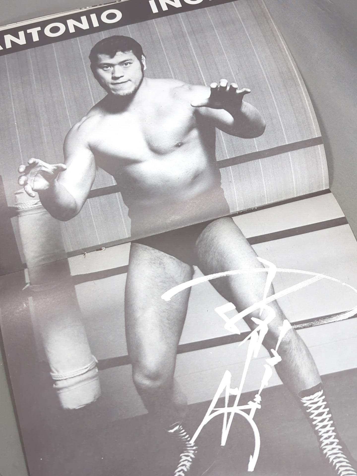 The first pamphlet published by New Japan Pro Wrestling . No stamp Cover: White / 72 flag raising opening series 1st