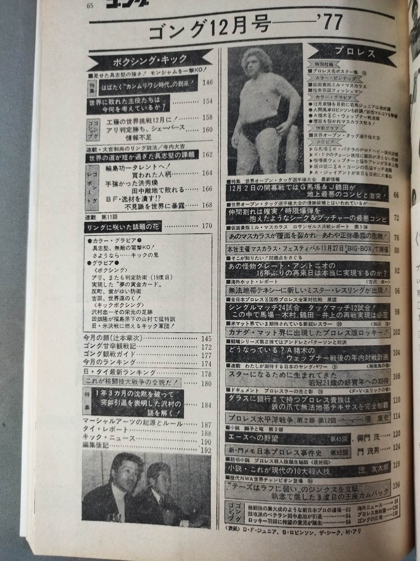 ・World Open Tag Fighters Championship Outlook ・10/25 Japan Budokan Showdown ・Special Report ・Mascaras' Ross Showdown ・Gushiken vs Monsham Match / [Appendix] 〇 Pin-up (Table) Mil Mascaras / Top wrestlers in Mexico (4) Fishman) 〇 Pro Wrestling Poster Collection (14) (Antonio Inoki vs Karl Gotch ) Cover: Dory Funk Jr. , Bill Robinson, The Sheik , Muhammad Ali