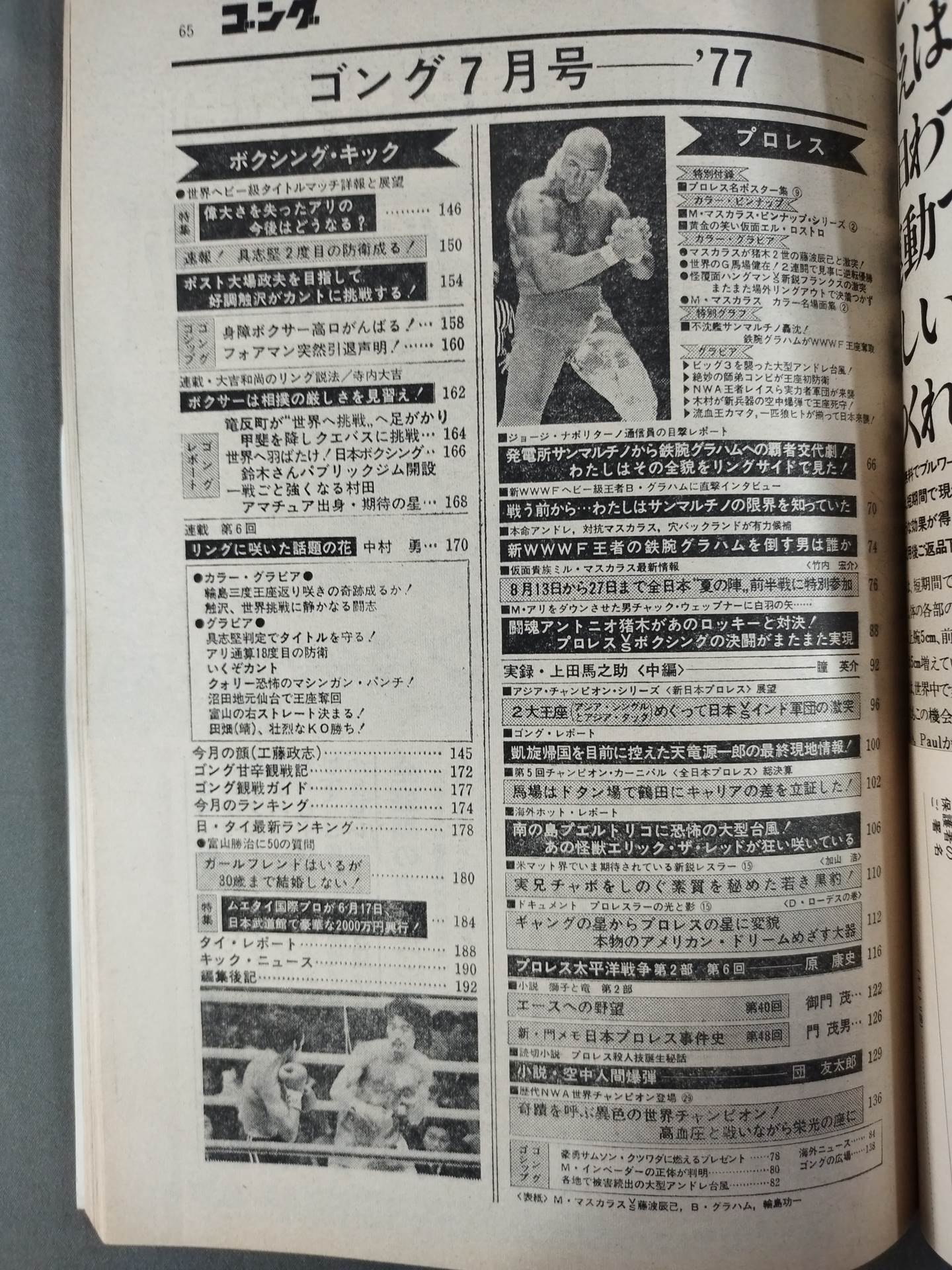 Special report! Mascara's latest Mexican decisive battle ・Exclusive! The full story of the WWWF Change of Throne Drama ・Breaking news! Yoko Gushiken ~ R. Marcano Fight ・Kimio Touchzawa burns his fighting spirit for the world's first challenge [Appendix] ○ Pin-up: Back Mascara Pin-up Series (2) / Front El Rostro ○ Special Appendix: Pro Wrestling Famous Poster Collection (9) Rikidozan vs. M Atomic