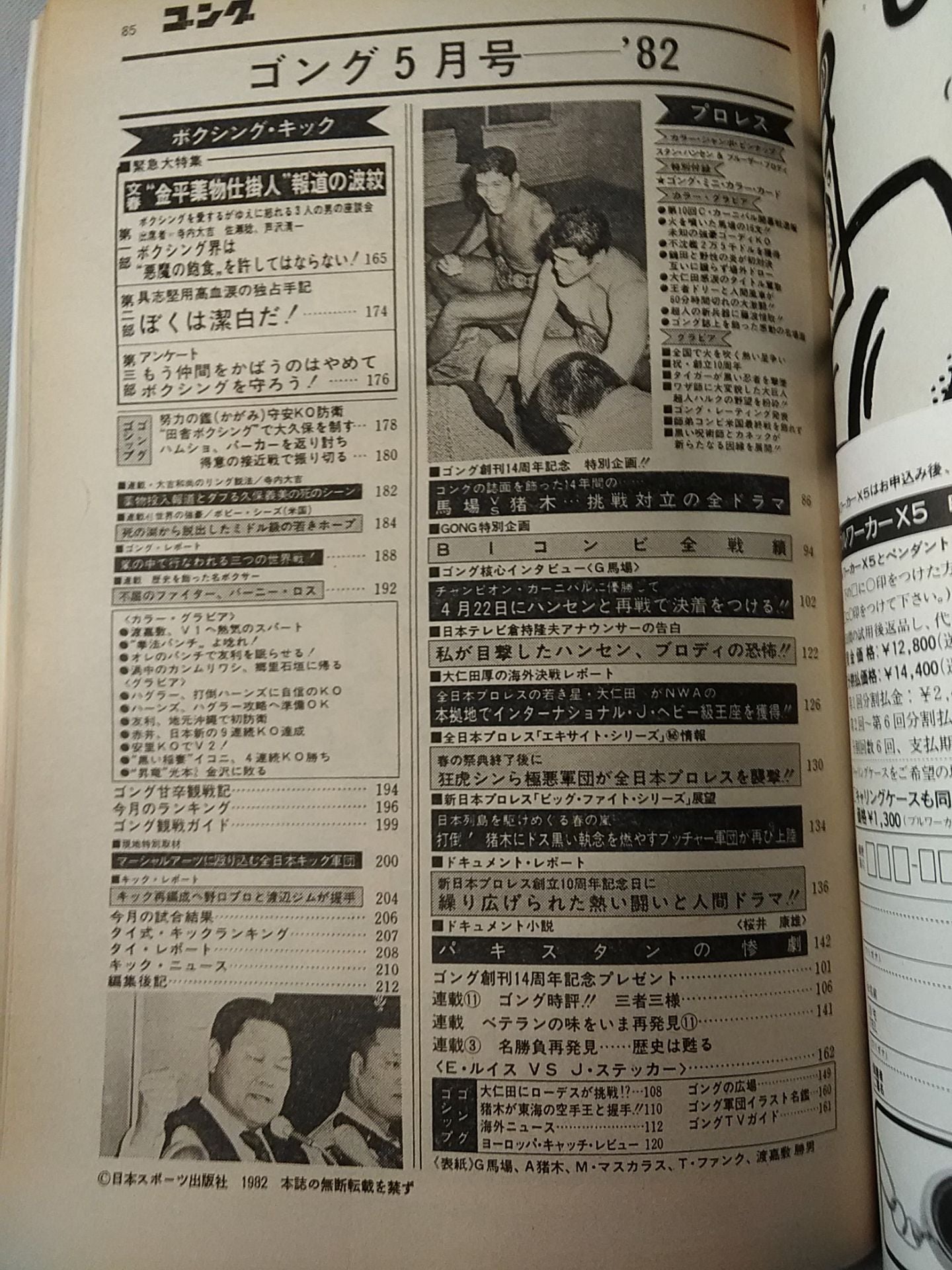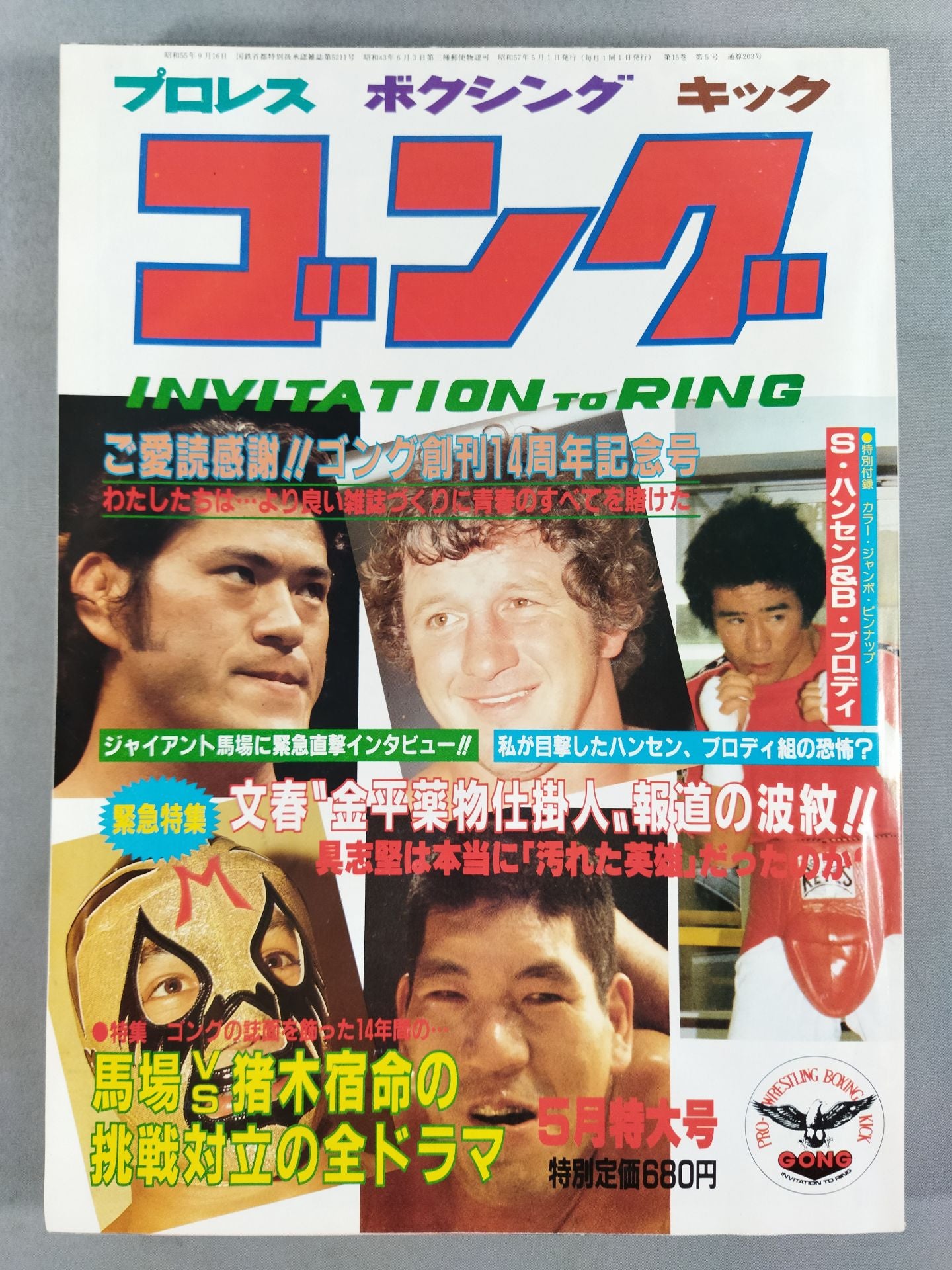 Gong's 14th Anniversary Issue Emergency Special Bunshun "Kinpei Drug Operator" Report Ripples Was Gu Shiken really a "dirty hero"? / [Appendix] ◯ Special Appendix (Gong Mini Color Card / Multiple fighters ) ◯ Color Jumbo Pin-Up (S. Hansen & B. Brody) Cover: G Baba, A Inoki , M Mascaras, T Funk, Katsuo Tokashiki