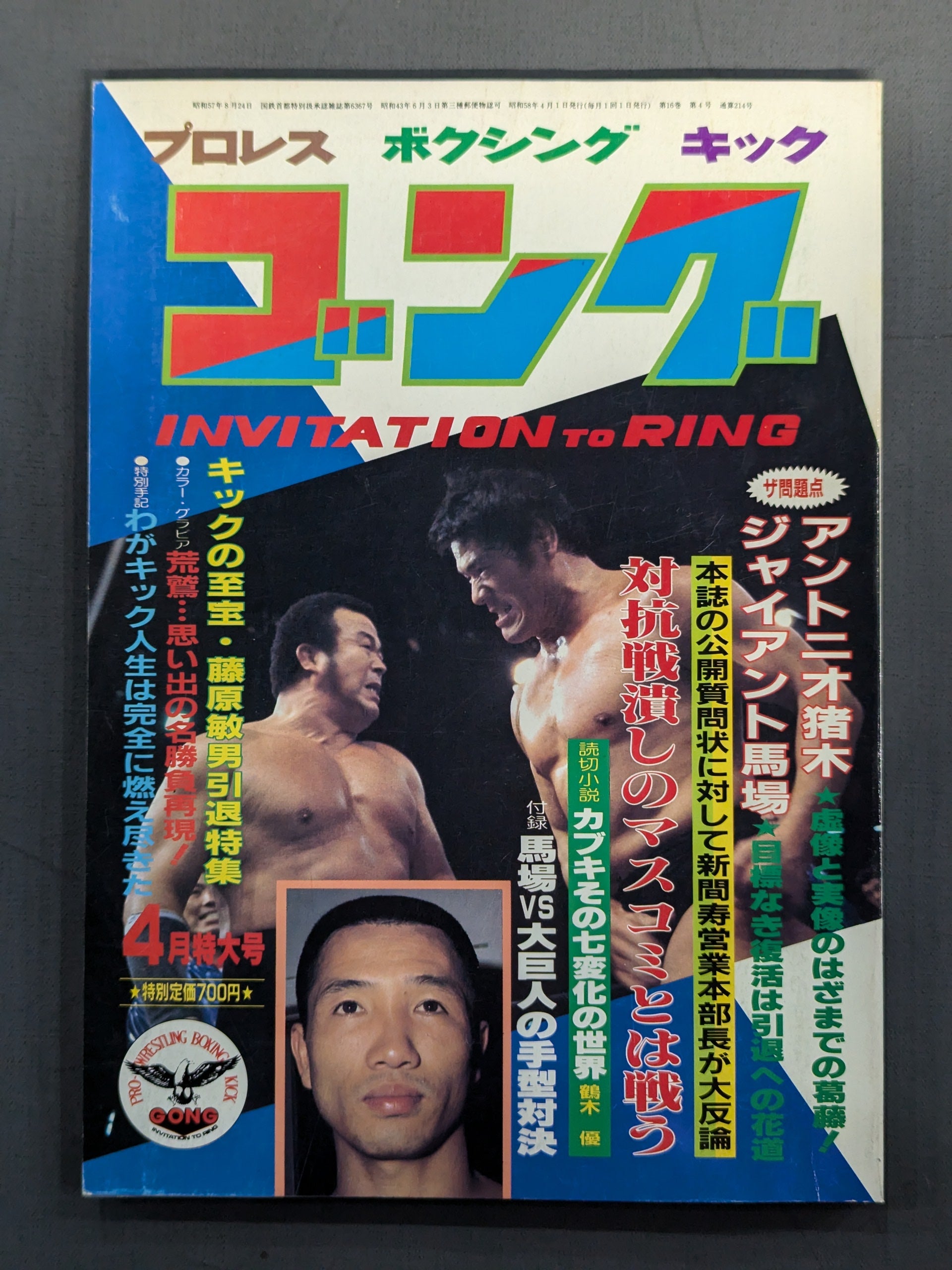 The problem Inoki & Baba Kotobuki Niima, general manager of the sales division, refutes the publication of this magazine Fighting against the media that crushes the competition Toshio Fujiwara's retirement special feature / [Appendix] ◯ Special appendix (Giant Baba vs Andre the Giant 's handprint (life-size) showdown!) ◯ Pin-up (Star Wrestler Pro-Photo 9 The Great Kabuki) Cover: Antonio Inoki , Rasher Kimura, Toshio Fujiwara