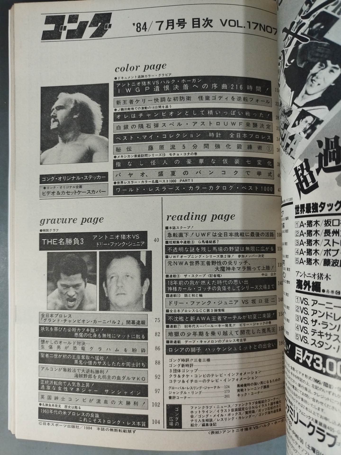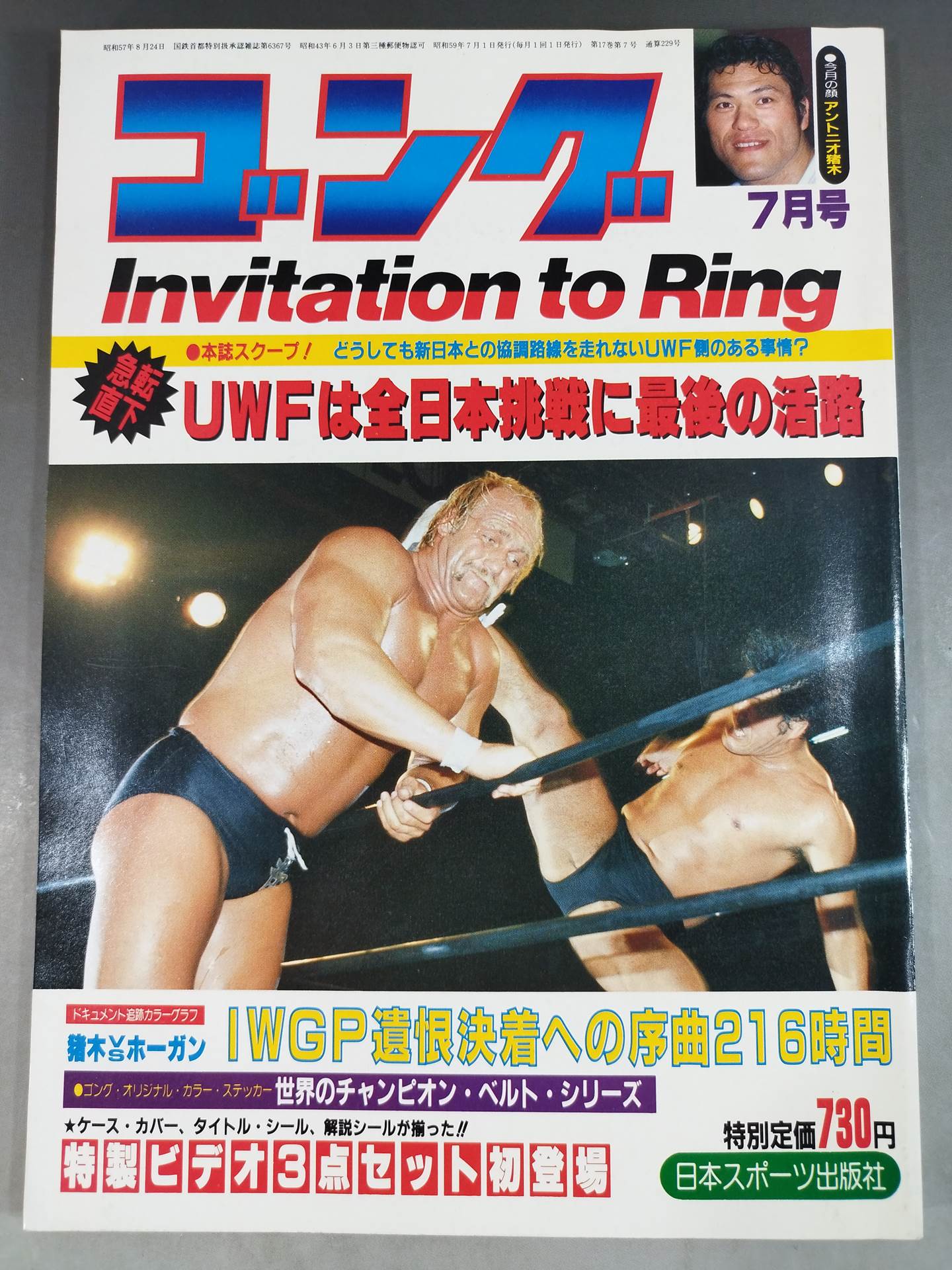 1984 Scoop of this magazine! Is there a situation on the part of UWF that cannot run on a cooperative route with New Japan Pro Wrestling? Sudden turn UWF is the last way to challenge all Japan Document tracking color graph Inoki vs Hogan IWGP Prelude to the Settlement of Grudges 216 Hours / [Appendix] ○ Special Appendix (Gong Original Champion Belt Sticker) 〇 Original Project (Video & Cassette Case Cover) Cover: Antonio Inoki , Hulk Hogan