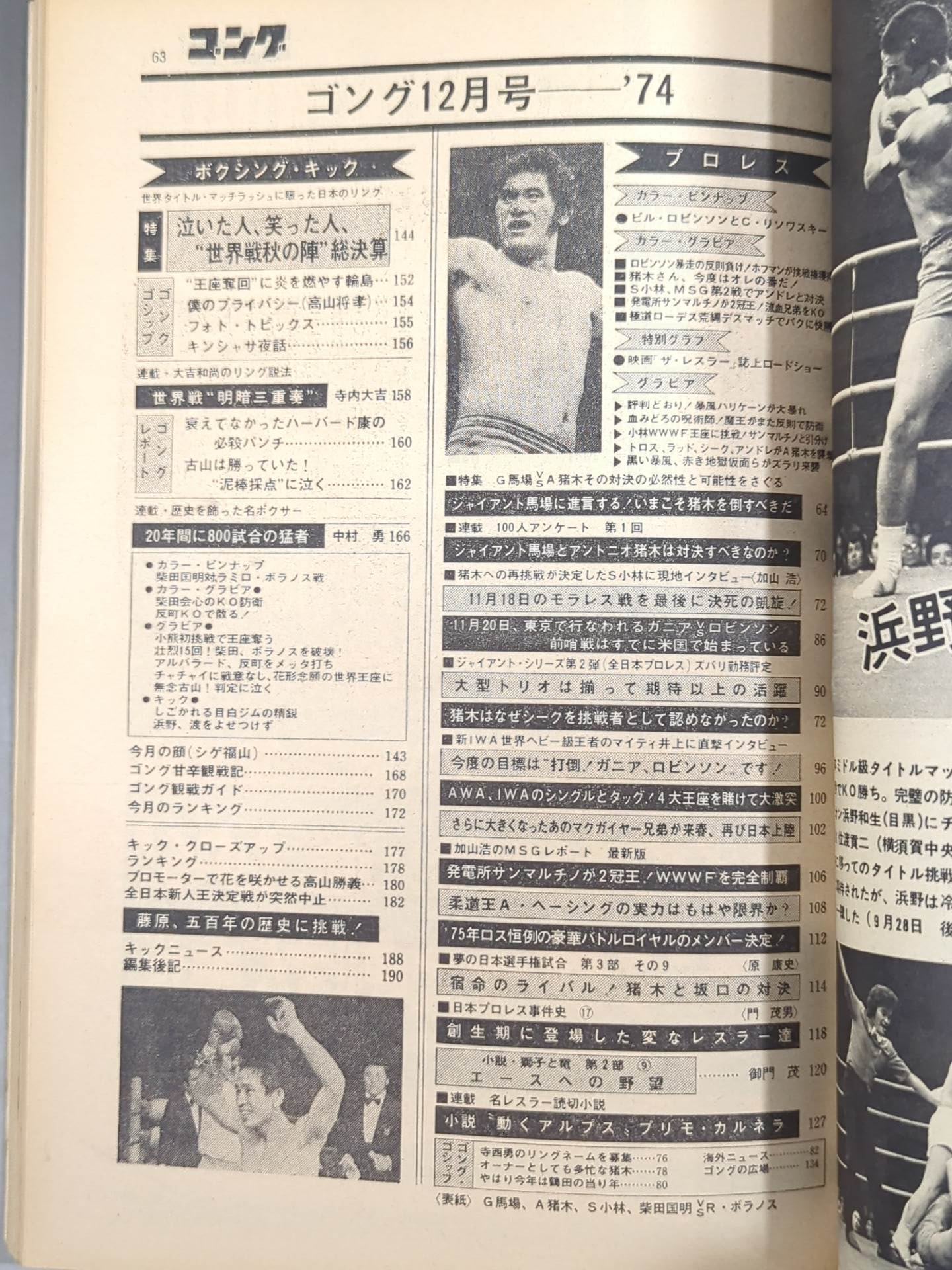 G Baba, A Inoki , S Kobayashi = Special Issue Special Graph: Released in the movie The Wrestler magazine Color Feature: Robinson vs. H. Hoffman 〈Special Feature) World War "Autumn Camp" Summary / [Appendix] ◯ Pin-up (Bill Robinson & Crusher Lisowski / Kuniaki Shibata vs Ramiro Boranos)