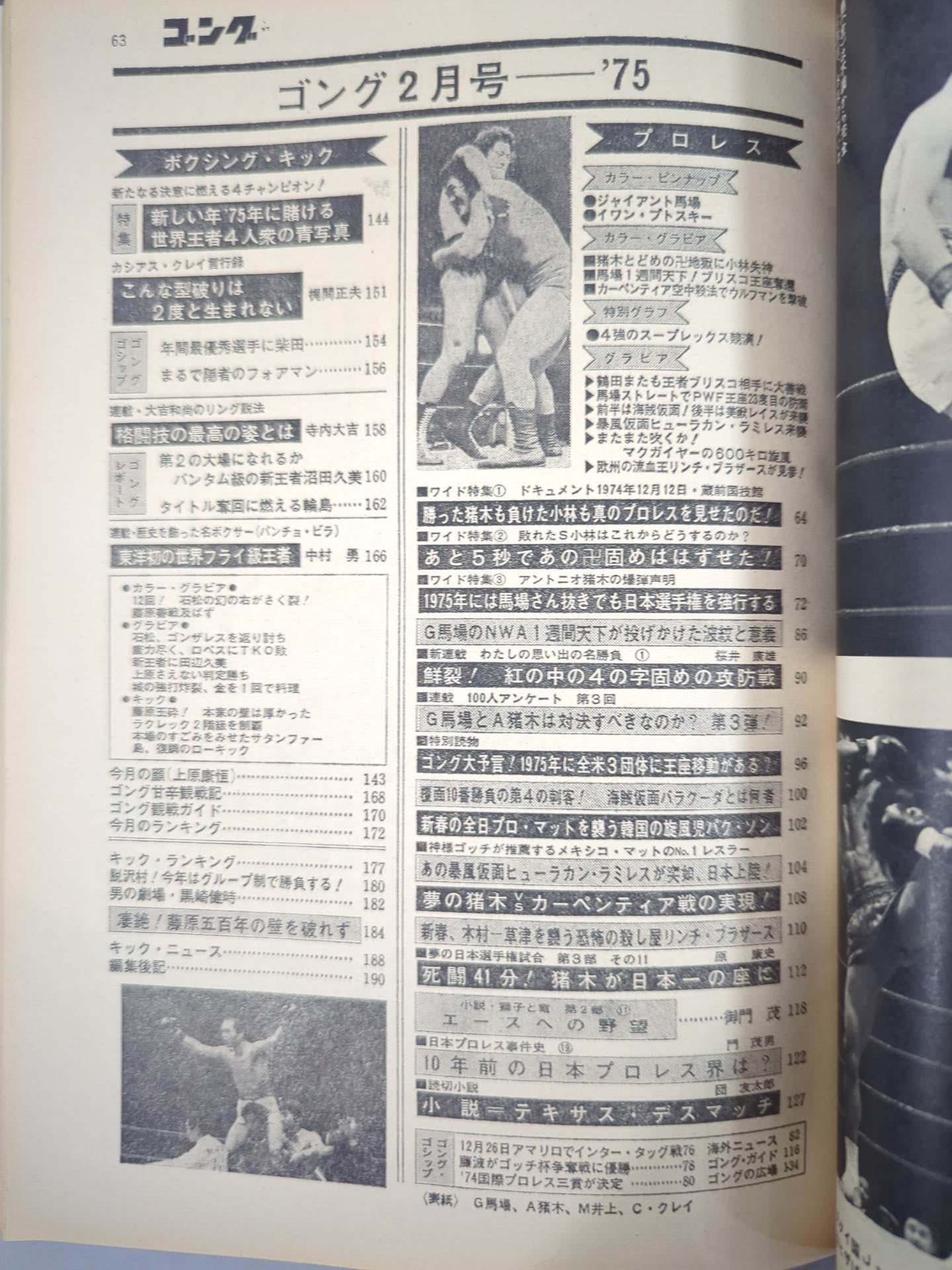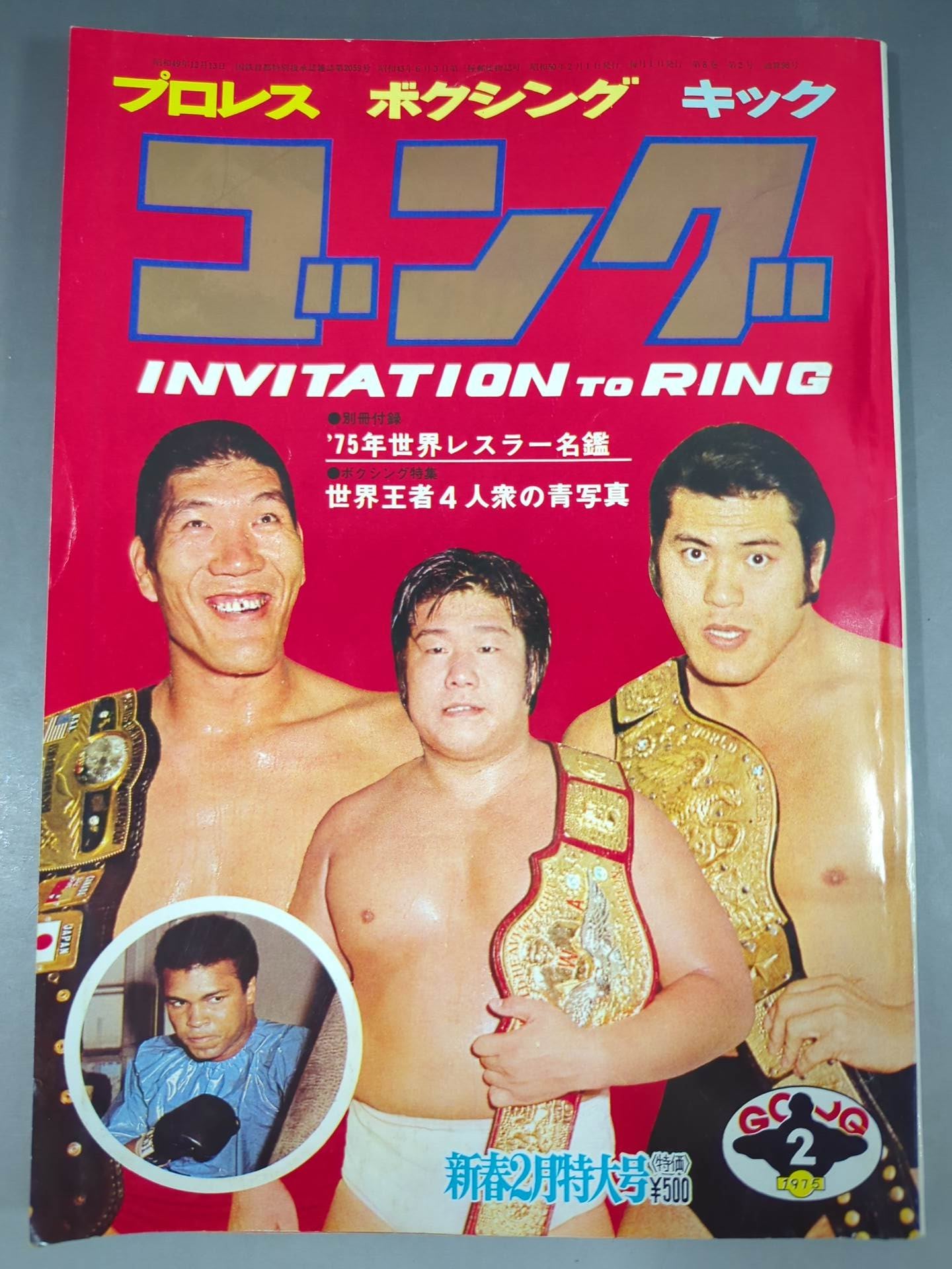 Boxing Special Feature: Blue photo  of the Four World Champions / [Appendix] ◯ Pin-up (Ivan Putsky / Giant Baba ) × Separate Appendix ('75 World Wrestlers Directory) / Cover: Giant Baba , Antonio Inoki , Mighty Inoue, Muhammad Ali