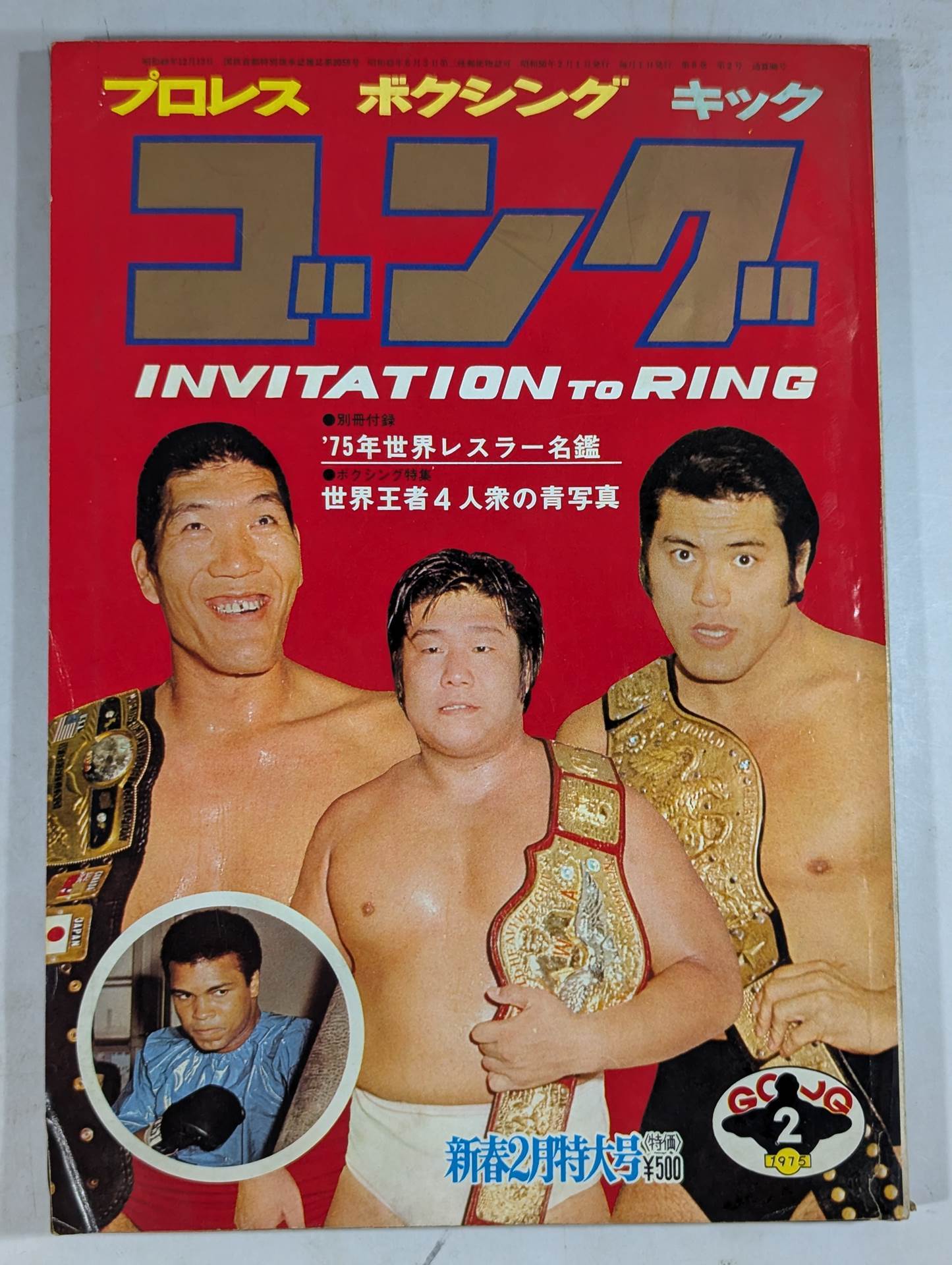Boxing Special Feature: Blue photo of the Four World Champions / [Appendix] ◯ Pin-up (Ivan Putsky / Giant Baba ) × Separate Appendix ('75 World Wrestlers Directory) / Cover: Giant Baba , Antonio Inoki , Mighty Inoue, Muhammad Ali