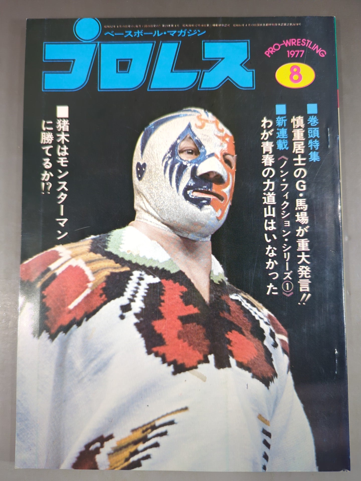 1977 G. Baba, a cautious layman, makes a serious statement! ! There was no Rikidozan of my youth, can Inoki beat Monster Man!? / [Appendix] ◯ Pin-up (Jumbo Tsuruta & Tenryu ) Genichiro ) Cover: Mil Mascaras
