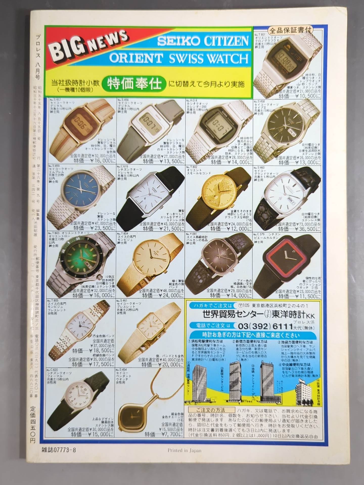 Inoki vs. Shin, the Japan when 8 years of grudge explodes Local special feature of this magazine! ! AWA World Heavy & Inter Tag Team & PWF fighters Rights Anna Kuramochi's close look and walk Double Title Showdown New York 8.9 Inoki , Fujinami participates! ! New Japan Pro Wrestling star Yoshiaki Yatsu Wraith, who is rumored to be in the Marvels, All Japan next series where mascaras are coming / [Appendix] ◯ Pin-up (Ernie Ladd ) Cover: Antonio Inoki vs Tiger Jeet Singh