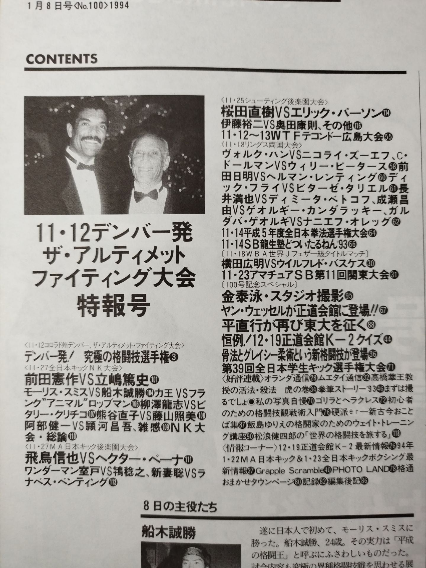 1994 Gracie Jiu-Jitsu is now a tremendous rumor in the martial arts world. / Pin-up: All Japan Kickboxing NK pamphlet cover, Andy Hug Cover: Royce Gracie