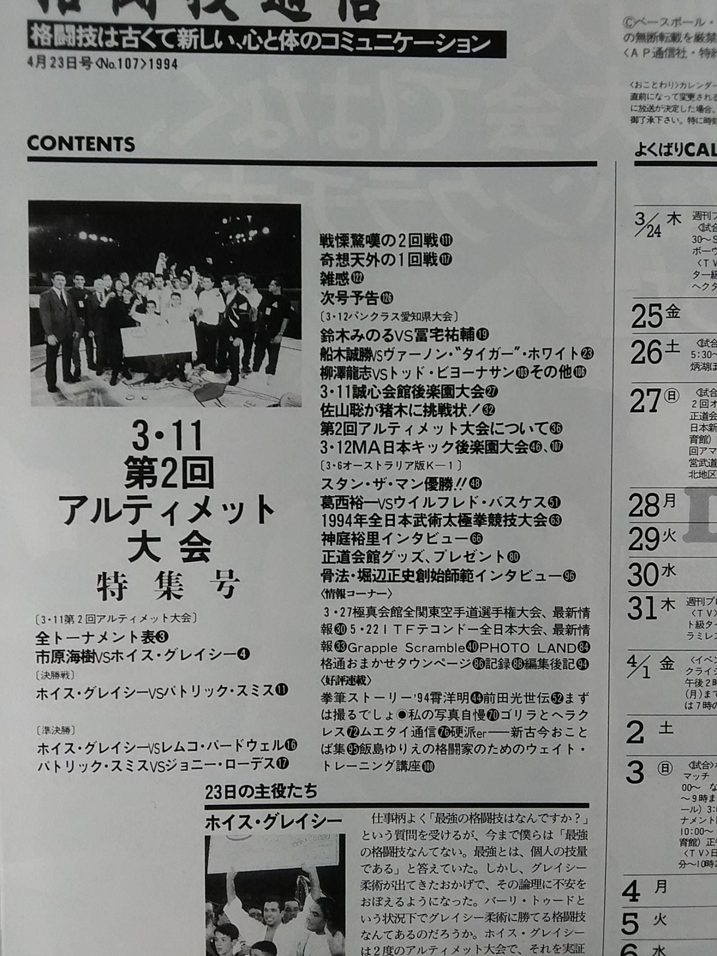 Japan's samurai lost - we finally saw the ultimate! Ichihara was completely defeated by Gracie Jiu-Jitsu. □ Pin-up: Andy Puffer vs. Branko Cikatic / Rob Carman & Champua Gessonrit Cover: Kaiki Ichihara vs Royce Gracie