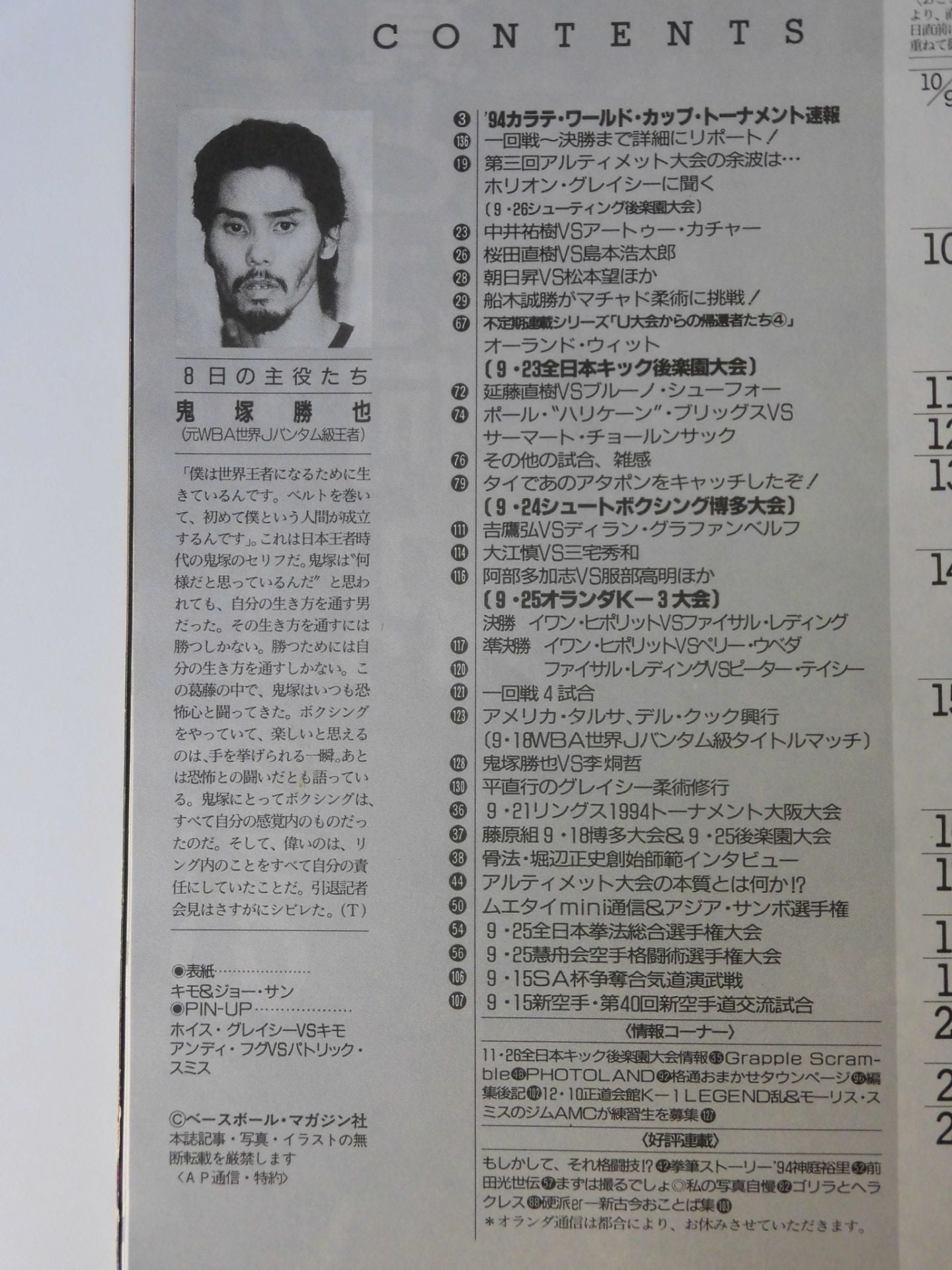 1994 K-1, crazy disgusting! / Pin-up: Royce Gracie vs Kimo, Andy Puffer Fish vs Patrick Smith / Cover: Kimo & Joe Sun