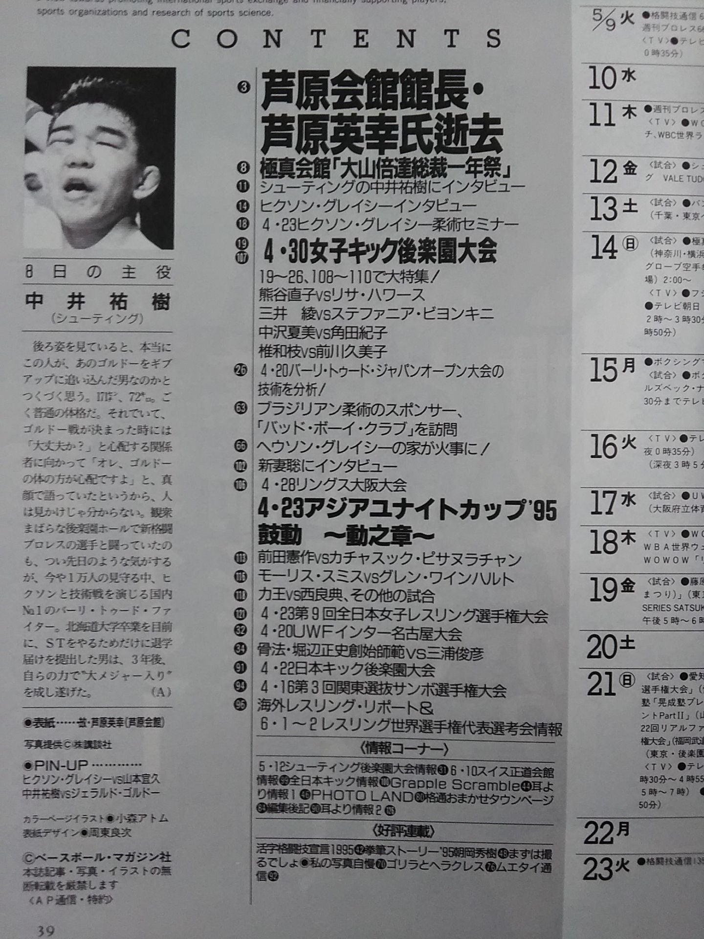 1995 "Fight 10th Dan" Hideyuki Ashihara dies / Hixon, Yuki Nakai interview "Fight 10th Dan" Hideyuki Ashihara dies / Pin-up: Hixon Gracie vs Yoshihisa Yamamoto, Yuki Nakai vs Gerald Gordo Cover: Hideyuki Ashihara