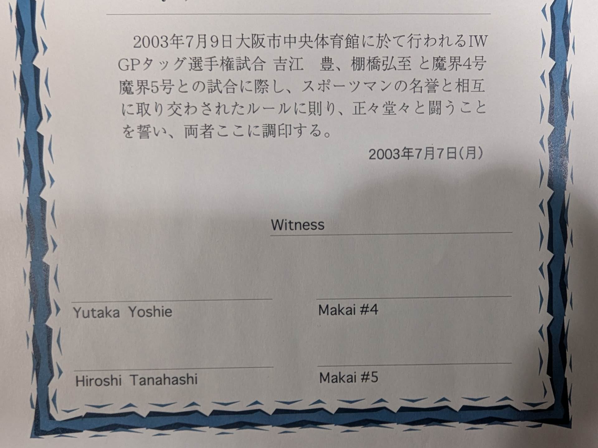 ★ Hiroshi Tanahashi & Yutaka Yoshie vs. Makai No. 4 & Makai No. ★ 5 IWGP Tag Team Fighters Championship Signing Letter