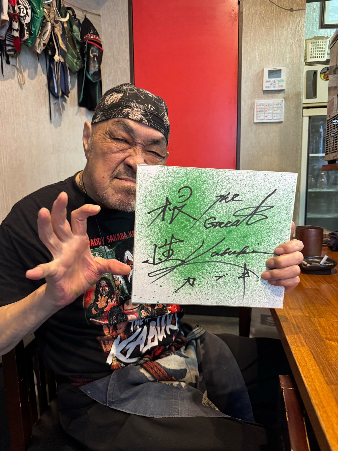"Mystery of the East" The Great Kabuki himself with poison mist hand signed autograph Shikishi ( Autograph board ) !