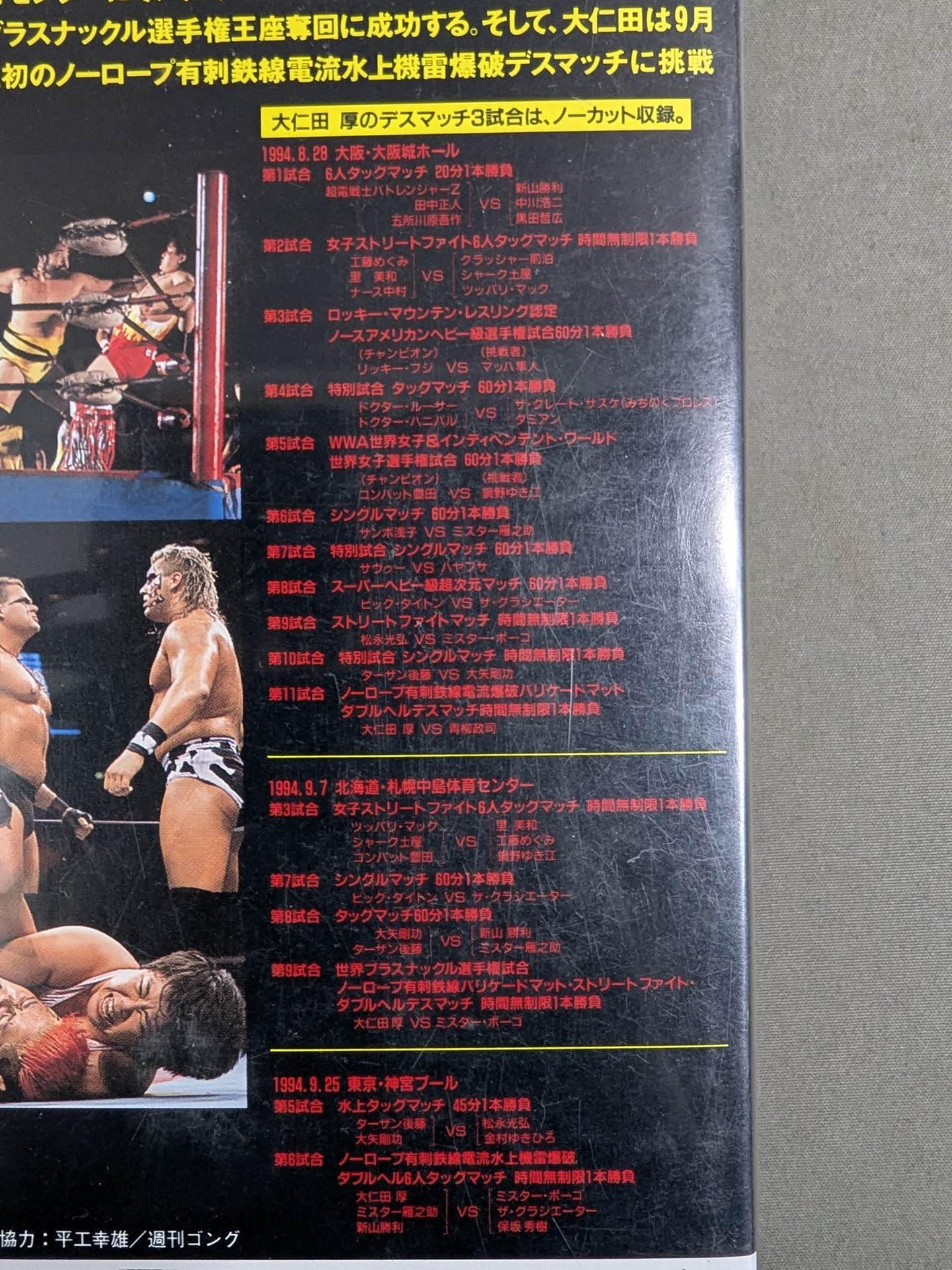 1994.08.28 Osaka Castle Hall / 1994.9.7 Sapporo Nakajima / 1994.9.25 Shingu Pool / Super Senshi Bato Ranger Z & Masato Tanaka & Gosaku Goshogawara vs Katsushi Niiyama & Koji Nakagawa & Tetsuhiro Kuroda / Megumi Kudo & Miwa Satomi & Nurse Nakamura vs Crusher Maebari & Shark Tsuchiya & Tsuppari Mac / Ricky Fuji vs Mach Hayato / Dr. Luther & Dr. Hannibal vs The Great Sasuke & Damian / Combat Toyoda vs Yukie Nabeno / Asako Sambo vs Mr. Yannosuke / Sabu vs HAYABUSA / Big Titon vs. The Gladiator / Mitsuhiro Matsunaga and so on! !