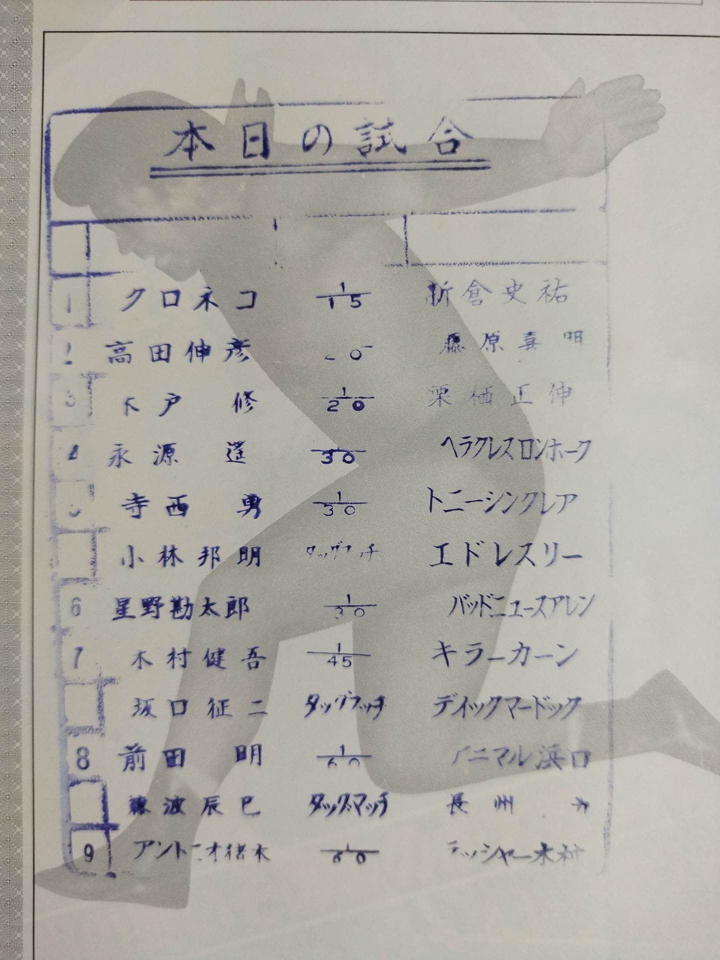 Venue: Rural Coliseum / stamped with list of matches : Antonio Inoki vs Lasher Kimura / Tatsumi Fujinami / Akira Maeda vs Riki Choshu / Animal Hamaguchi