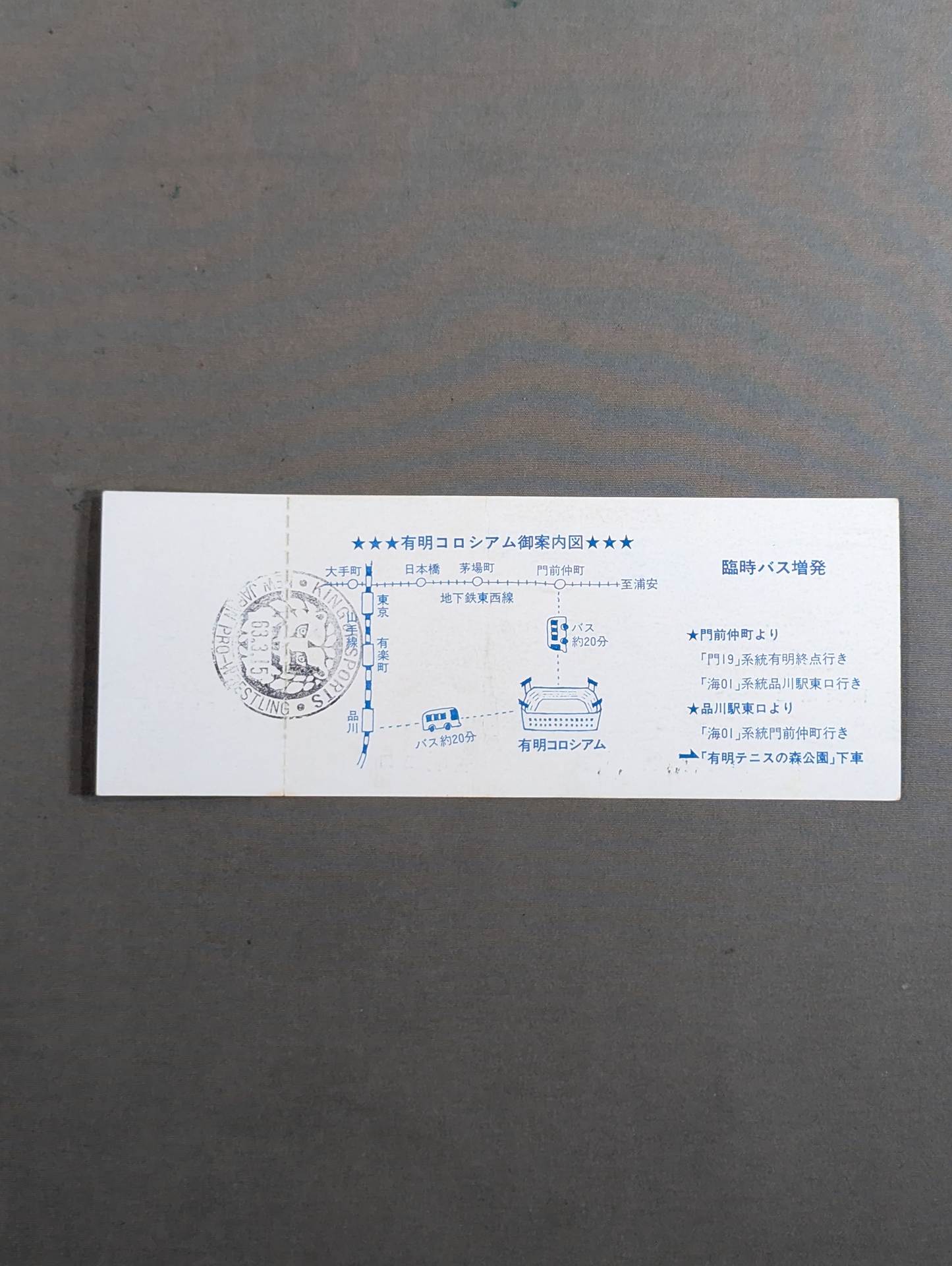 Invitation ticket West P side 25 row 18 / Ariake Coliseum It was scheduled to be held as the first box office of Pro Wrestling , but due to rain, it was postponed to the next day on the 8th.