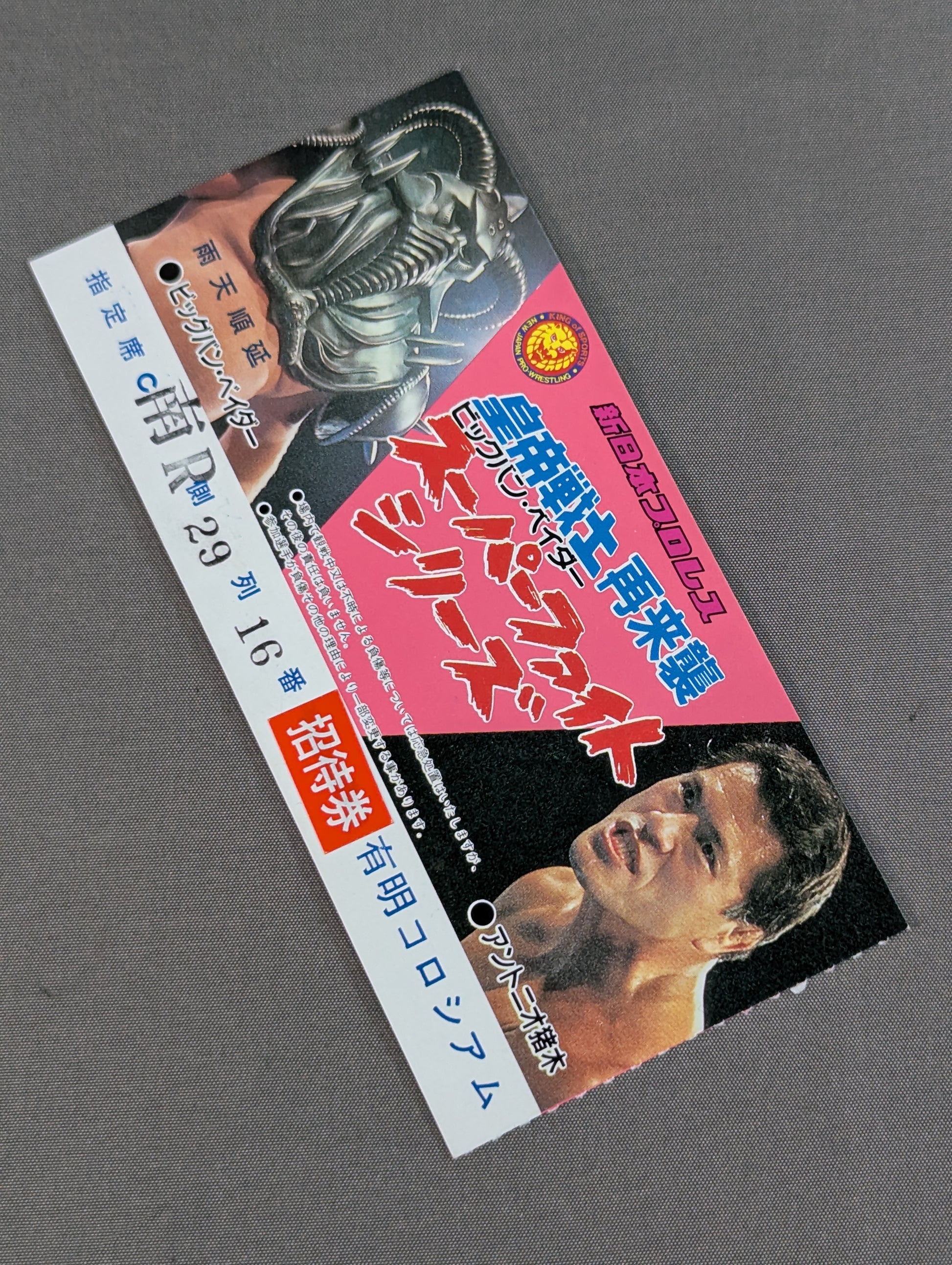 Reserved Seat C *Labeled "Invitation Ticket" South R Side Row 29 No. 16 / [IWGP Heavyweight Championship Match] Tatsumi Fujinami vs Big Van Vader / [IWGP Junior Heavyweight Fighters] Hiroshi Hase vs. Shiro Koshinaka / [Mixed Martial Arts Battle] Don Nakaya Nielsen vsKeiichi Yamada