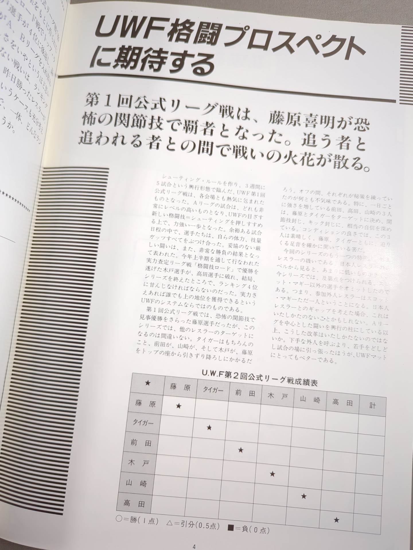 Venue: Korakuen Hall / stamped with list of matches :【 UWF 2nd Official League Match] Yoshiaki Fujiwara vs Super Tiger / [Official League Match] Kazuo Yamazaki vs Nobuhiko Takada / Akira Maeda Missing / Former UWF
