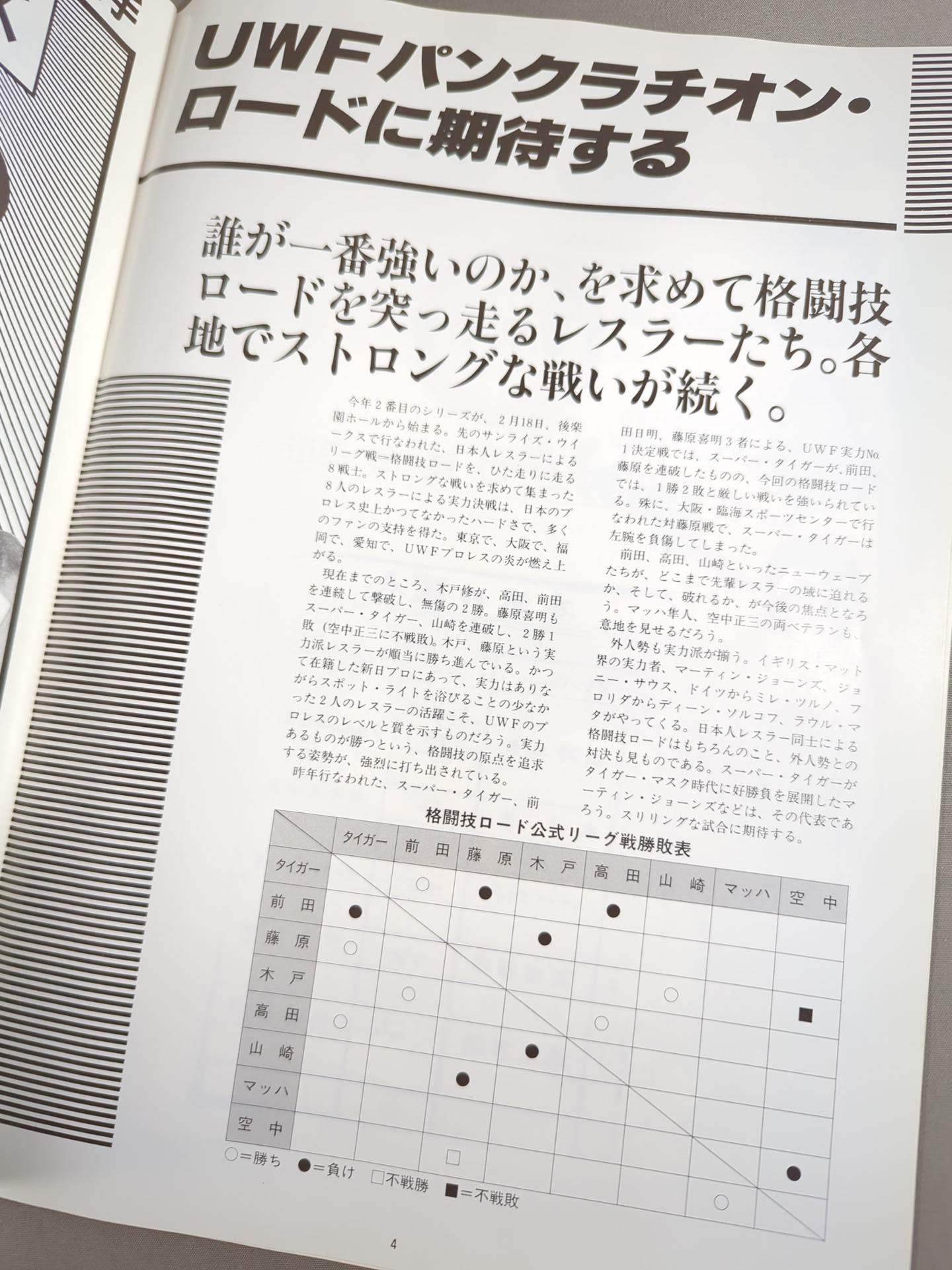 Venue: Korakuen Hall / stamped with list of matches :【 Fighting Road Official League] Yoshiaki Fujiwara vs Akira Maeda / [Official League Match] Nobuhiko Takada vs Shozo Sora / Former UWF