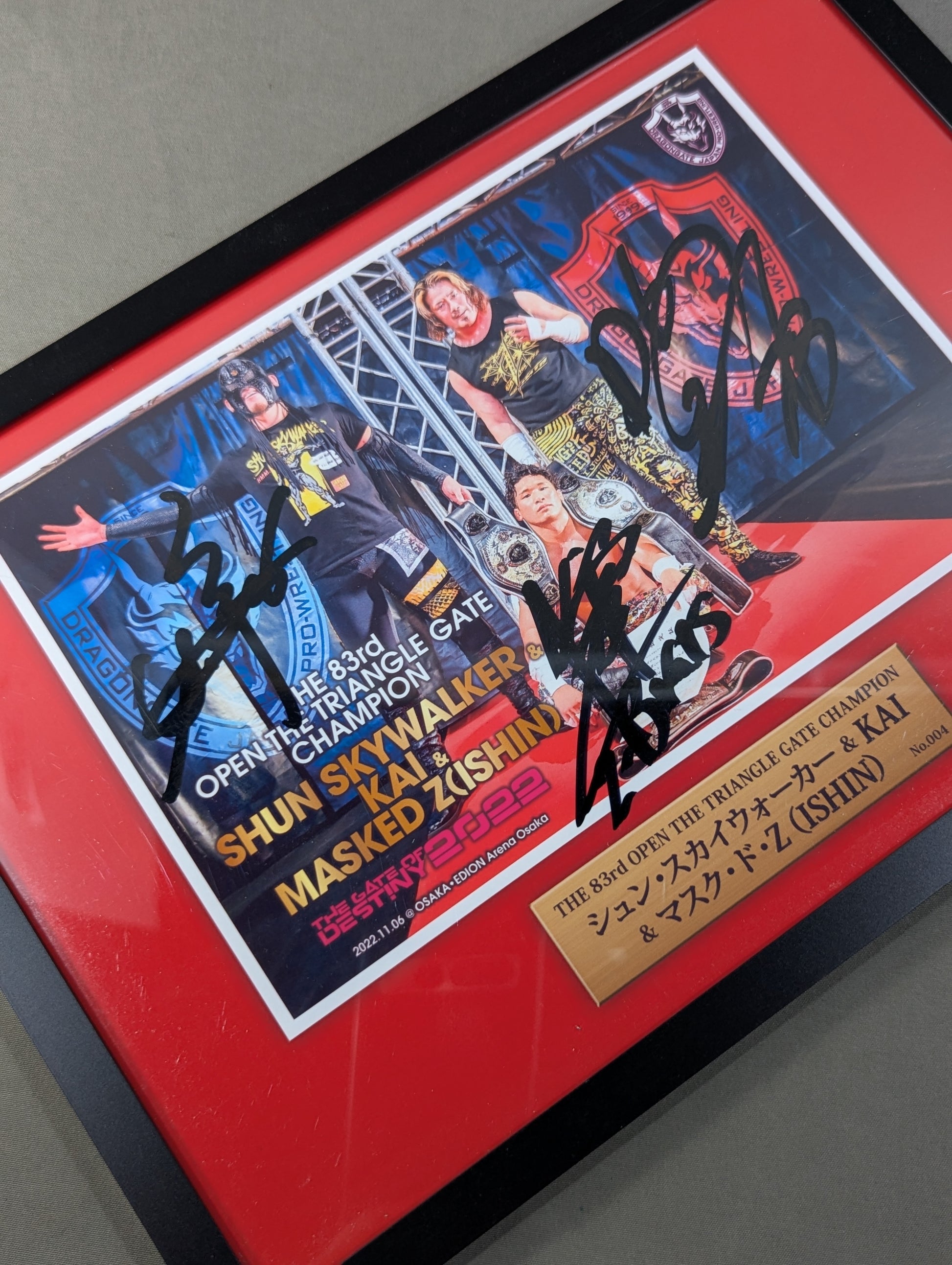 The 83rd Open The Triangle Gate Champion (Shun Skywalker & KAI & Mask de Z) hand signed autograph photo frame