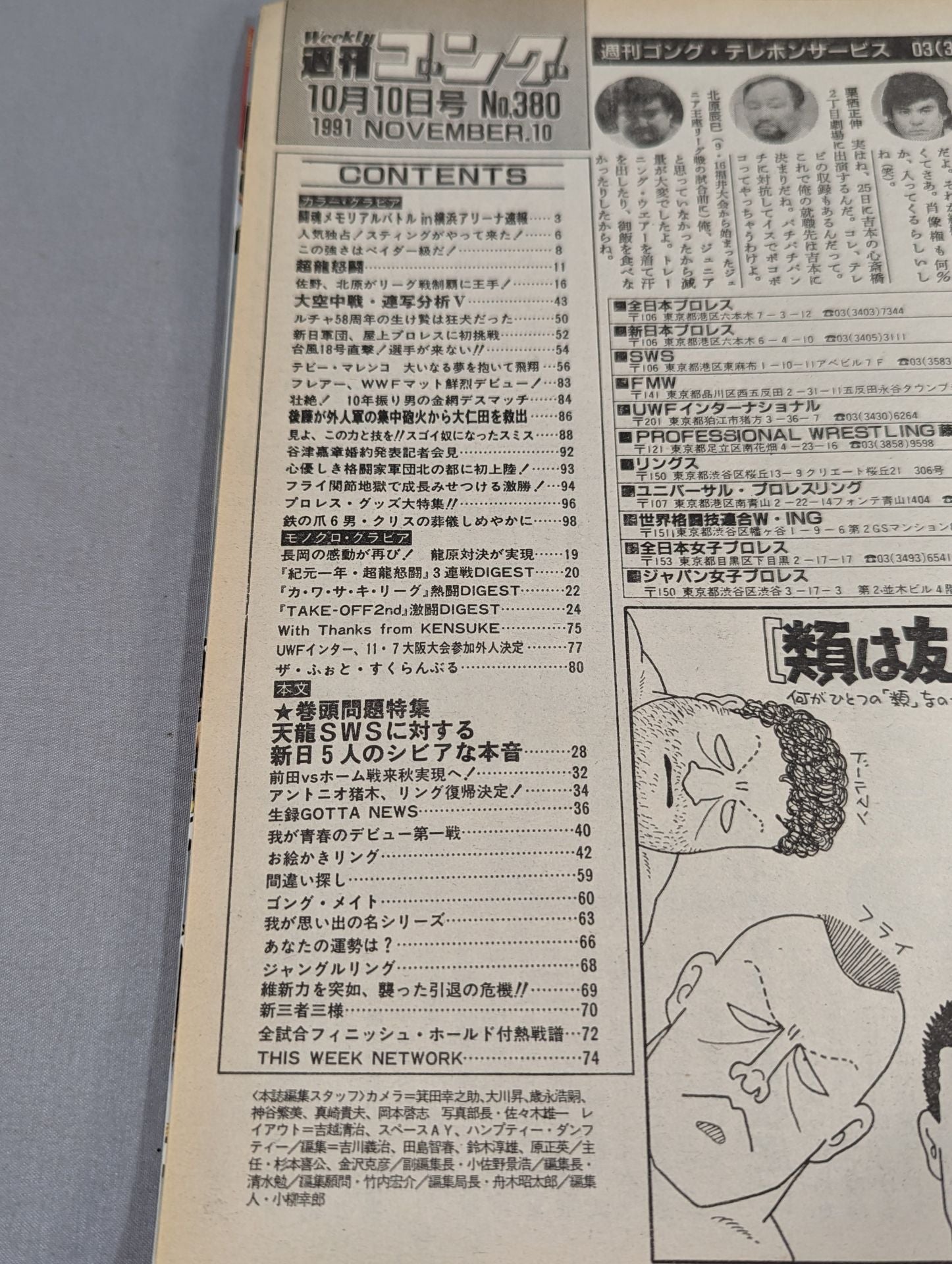 1991 Tenryu Top 5 New Japan Serious Feelings About SWS Cover: Tenryu Genichiro , Tatsumi Fujinami , Masahiro Chono , Muto Keiji , Hiroschi Hase , Shinya Hashimoto