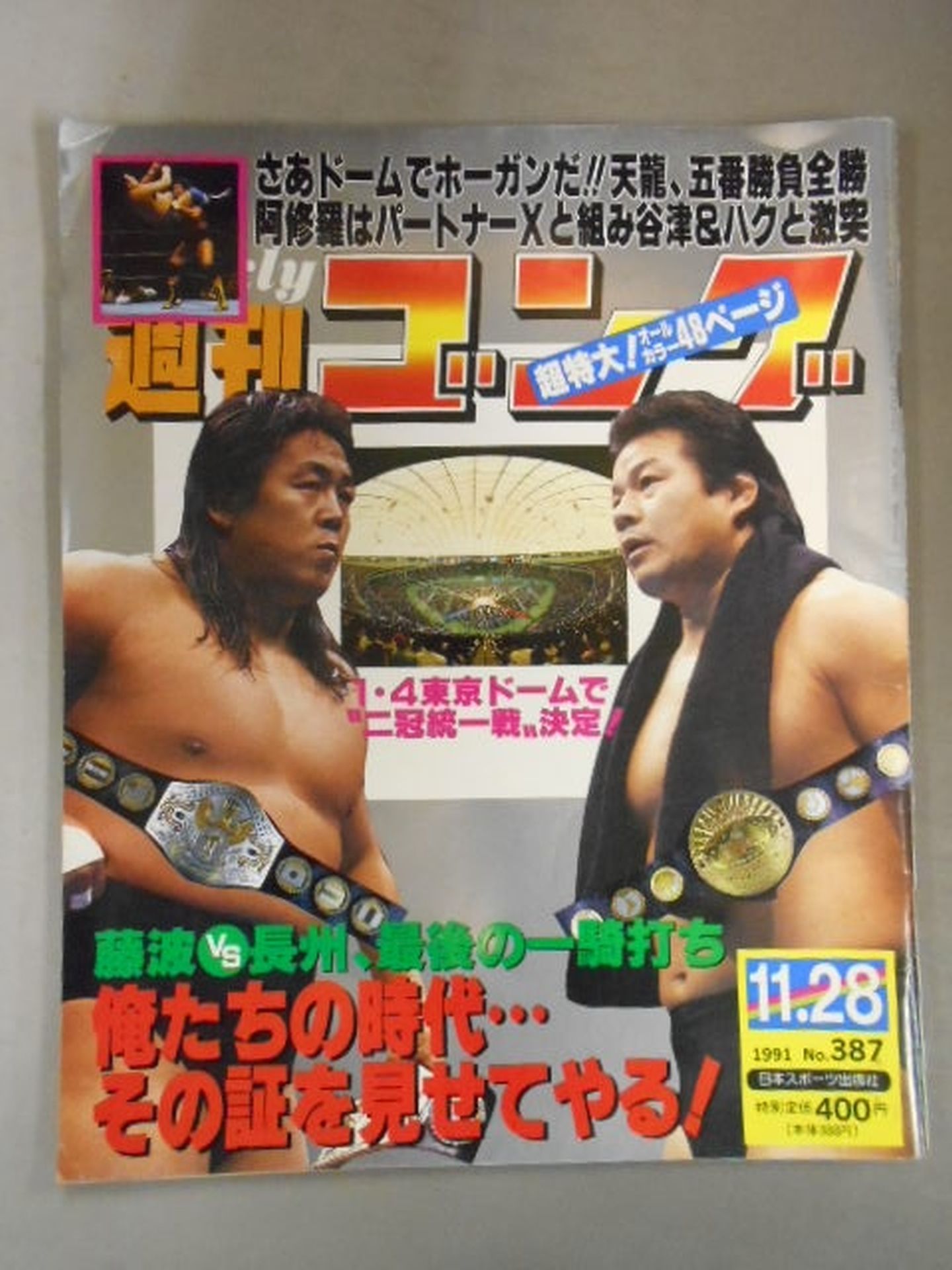 In search of the blood of Atsushi Onita ... The Phantom of Arabia resurrected from legend! / Come on, it's Hogan in the Dome!! Tenryu wins all five games / Cover: Riki Choshu & Tatsumi Fujinami