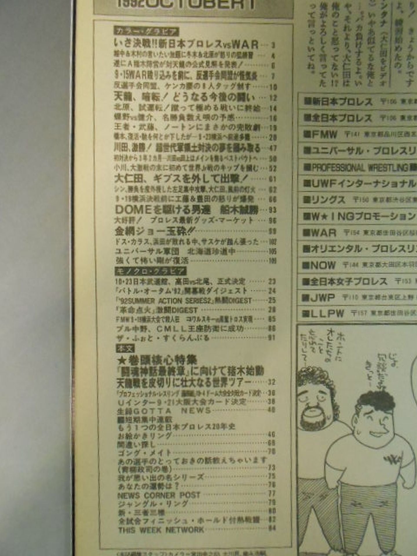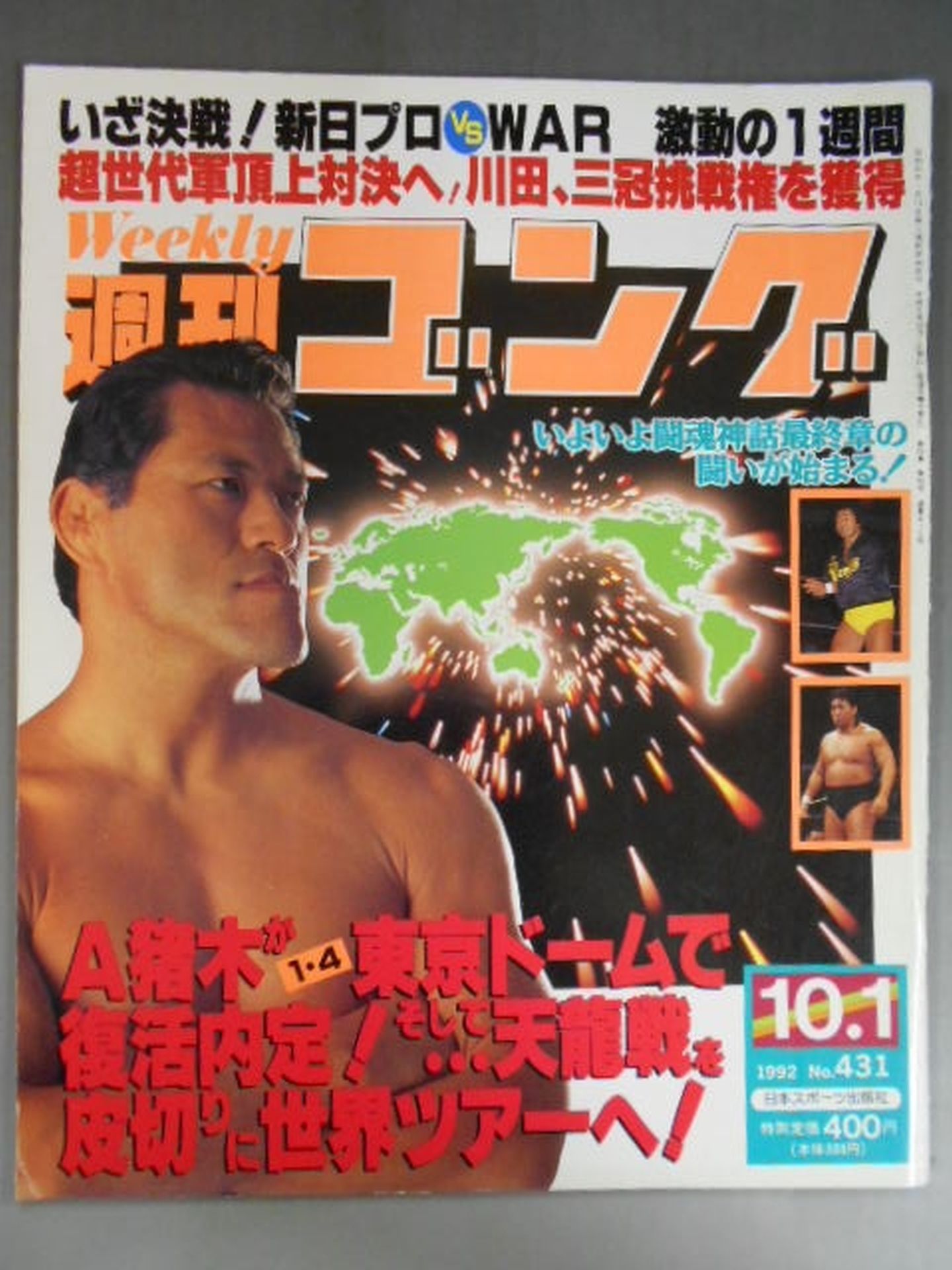 A Inoki is back at 1.4 Tokyo Dome! And then... starting with the Tenryu match, go on a world tour!! / Pin-Up: Atsushi Onita Cover: Antonio Inoki