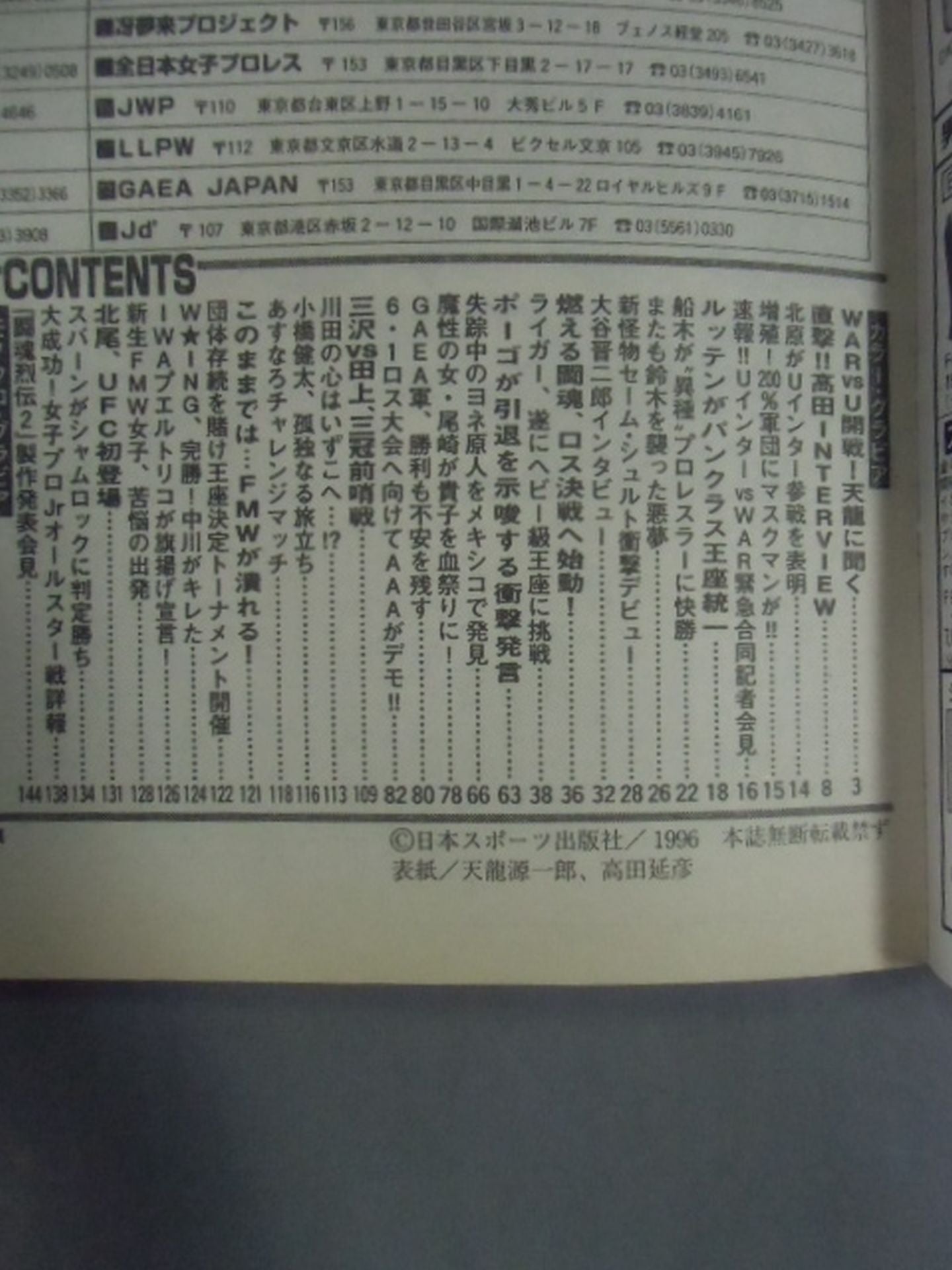 Tenryu vs Takada is an inevitable flow. The truth is white! No Wait / Pin-Up: The Great Sasuke Cover: Tenryu , Takada