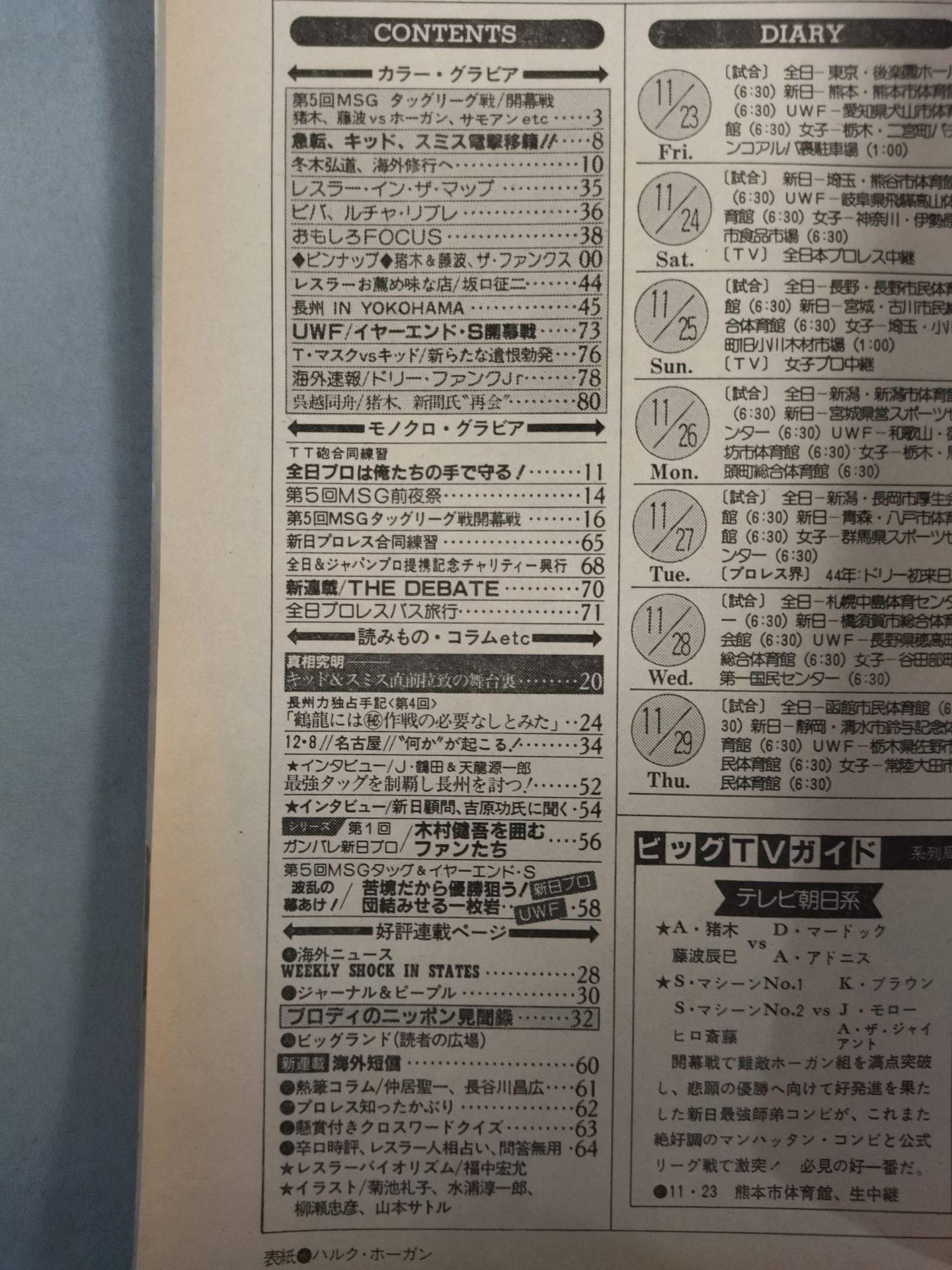 1984 The 5th MSG Tag Team Series Ear End Special / ◯ Pin-up (Terry Funk & Dory Funk Jr. / Antonio Inoki & Tatsumi Fujinami ) Cover: Hulk Hogan