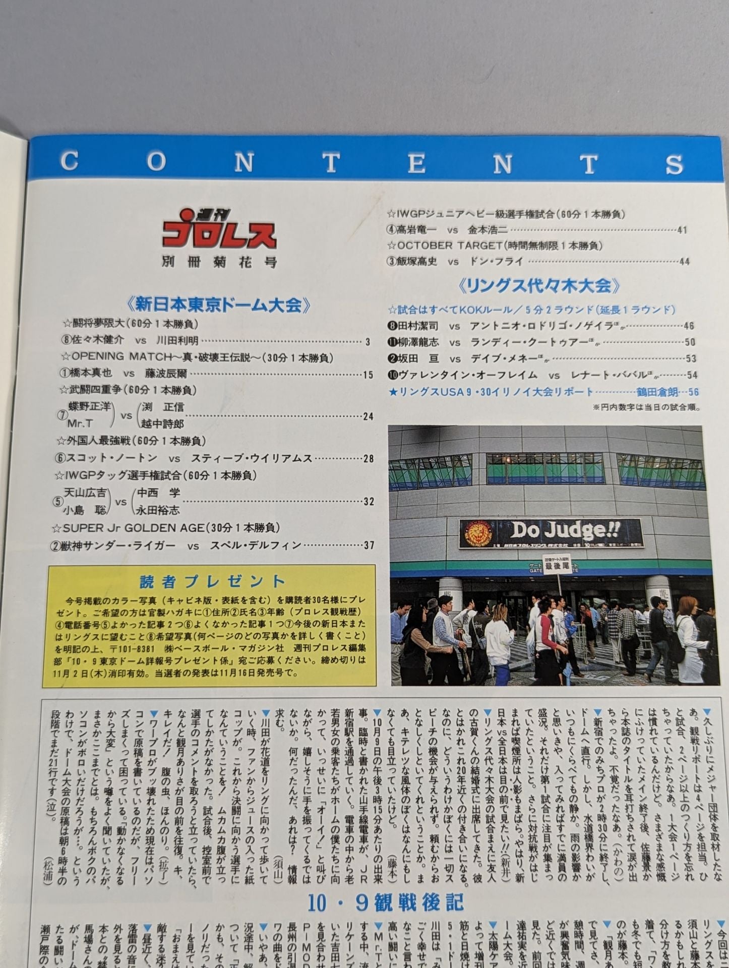 New Japan 10.9 Tokyo Dome "Do Judge!! Complete Detailed Report Cover: Toshiaki Kawada vs Kensuke Sasaki