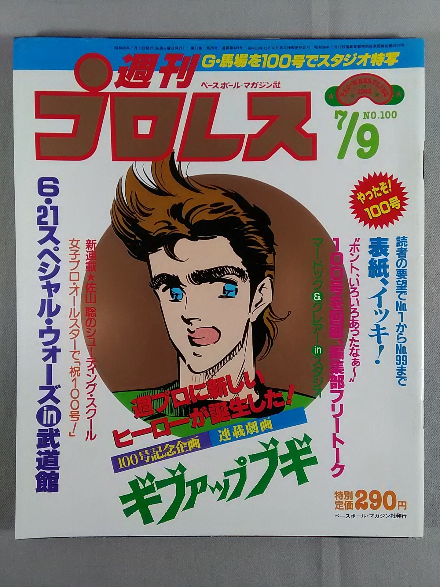 A new hero has been born in the weekly pro! 100th issue commemorative project serialized drama give-up boogie / 6.21 Special Wars in Budokan / Studio special shot of G. Baba in the 100th issue / Cover from NO.1 to NO.99 at the request of readers, Ikki! / Pin-up: Giant Baba , Antonio Inoki vs Bruiser Brody