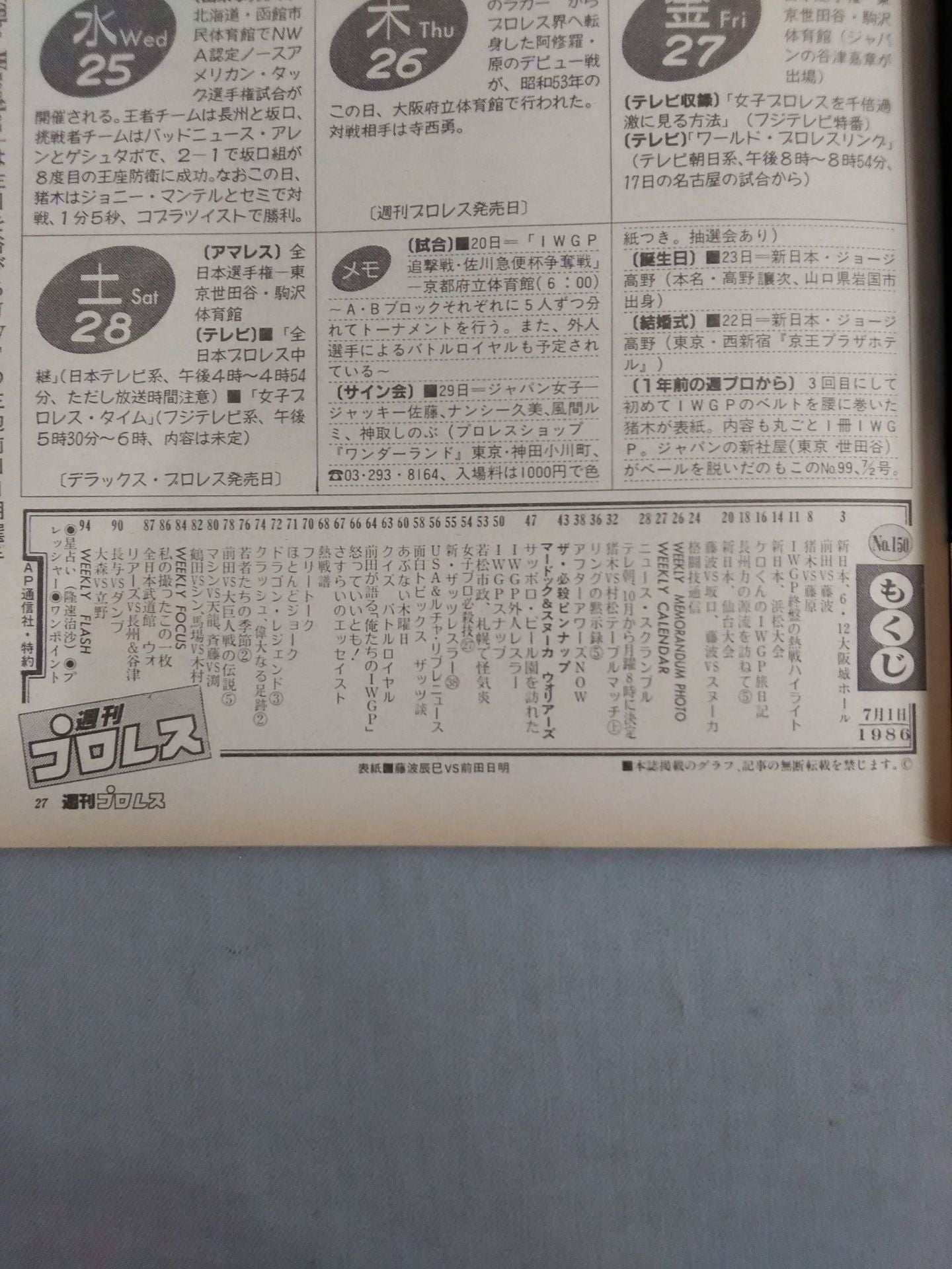 1986 Fujinami vs Maeda "This match is a message to those who will succeed Inoki , Baba"! / The demonic hand of the WWF invasion of Japan to the women's pros... ○ Pin-ups: Dick Murdoch & Jimmy Snuka /Road Warriors, Paul Ellering, Harley Race Cover: Akira Maeda , Tatsumi Fujinami