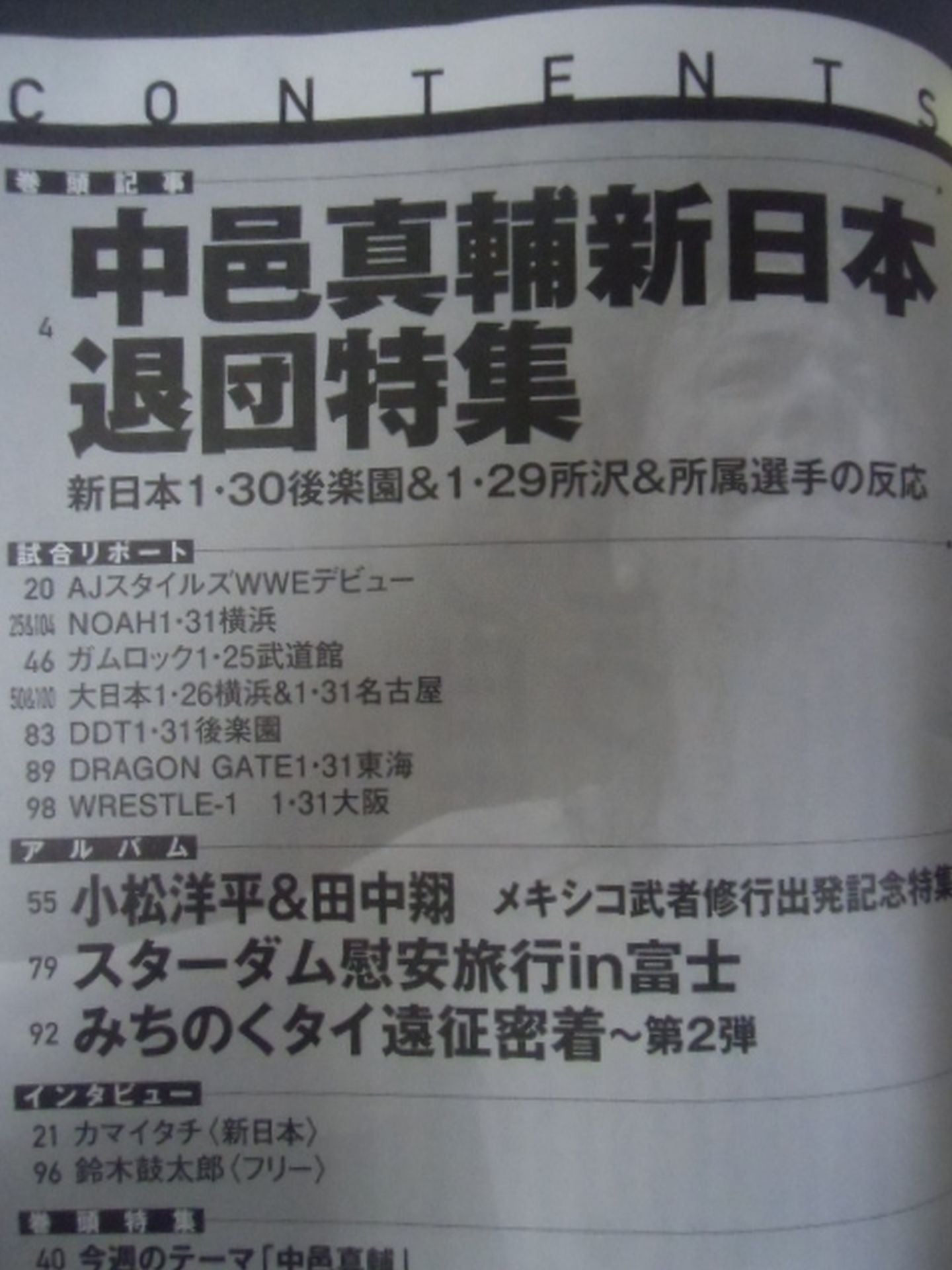 Thank you for 2016 until we meet again. Nakamura leaves for WWE for a tearful send-off match / The time bomb is Kanemaru! Sugiura GHC Heist Declaration of Destruction of Suzuki Army Ark / IWGP Interconch Finals X is Tanahashi / Kamaitachi Direct Hit / Cover: Shinsuke Nakamura