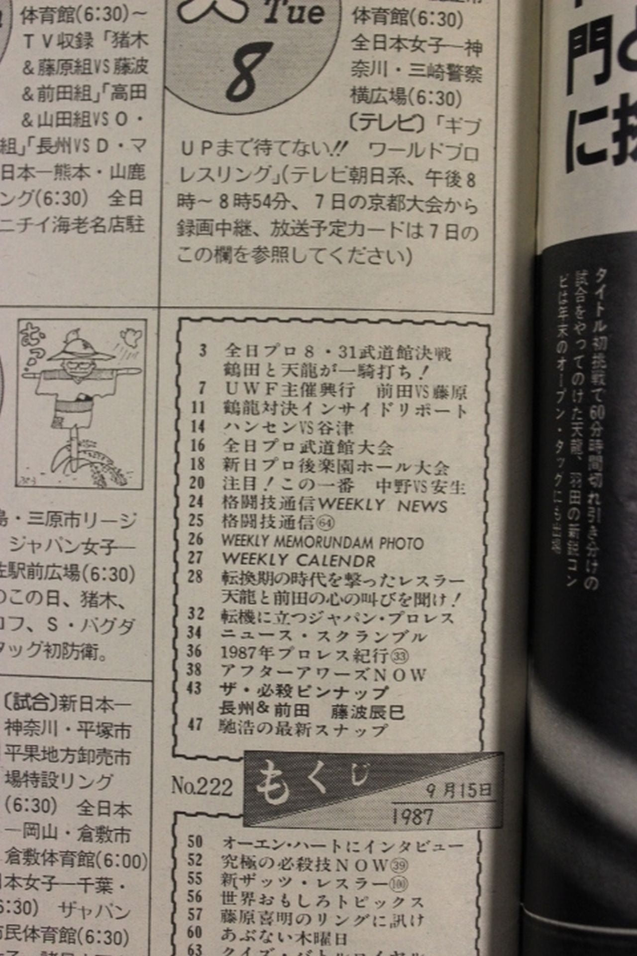 Tenryu beats Tsuruta! / Pin-up: (Akira Maeda & Riki Choshu , Tatsumi Fujinami ) / Cover: Jumbo Tsuruta, Tenryu Genichiro