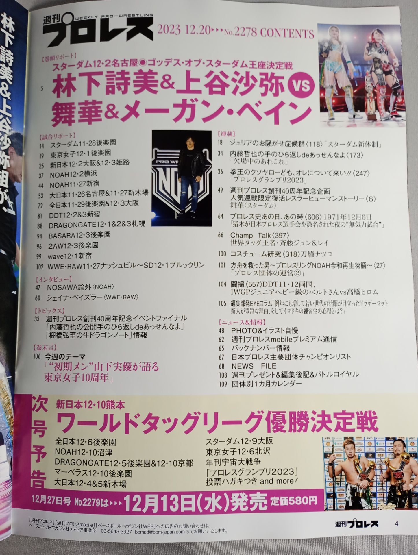 Tojo Ten Years Love / [Introductory Report] Stardom 12.2 Nagoya Goddess of Stardom Championship Final: Utami Hayashishita & Saya Kamitani vs Maika & Megan Bain / [Match Report] Stardom 11/28 Korakuen, Tokyo Women's 12/1 Korakuen, NOAH12/2 Yokohama, etc. / 【Interview】 NOSAWA RONGAI (NOAH), Shayna Baszler (WWE, RAW) Cover: Tokyo Women's Flag Raising 10th Anniversary Korakuen Tournament