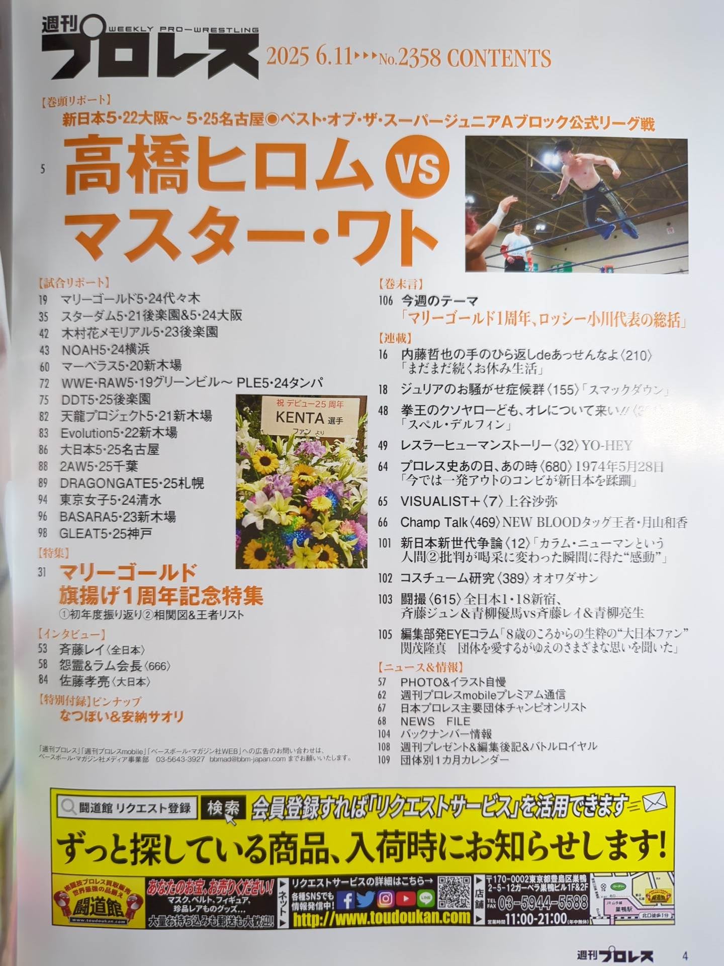 Nanae Takahashi puts an end to his 29-year Pro Wrestling life / Super Junior Climax / Carnival First Winner, Rei Saito Listen to / YO-HEY Human Story / Kazusada Higuchi wins KOD / HANAKO explosion also SLK white V4 / Giulia talks about SmackDown promotion / Pin-up: NATSUPOI &Saori Anou / Cover: Nanae Takahashi