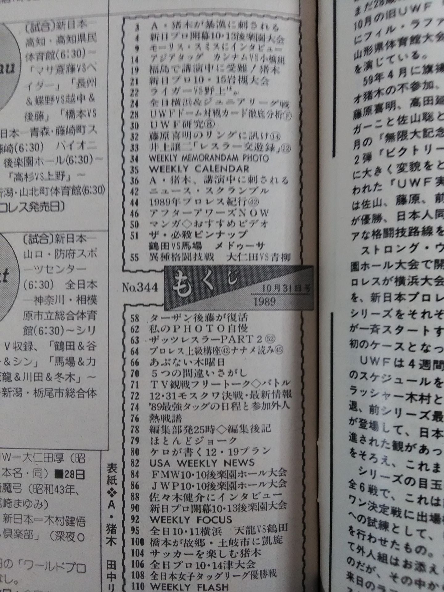 1989 Congressman Inoki bleeds heavily during a performance / Pin-up: Jumbo Tsuruta / Medusa Cover: Antonio Inoki