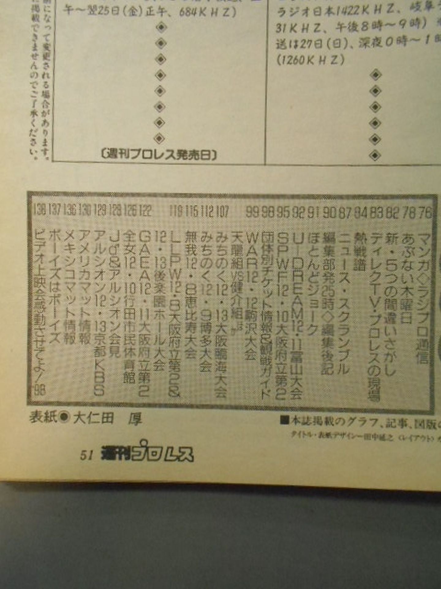 Riki Choshu , can you drink this poison? / '98 Pro Wrestling Award MVP is Kobashi / HAYABUSA , Oya ni Awakening Cover: Atsushi Onita
