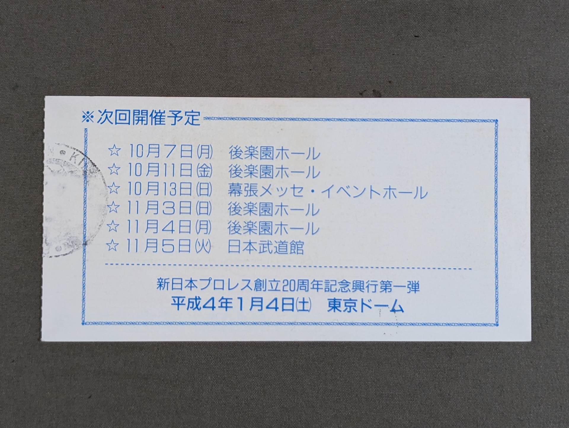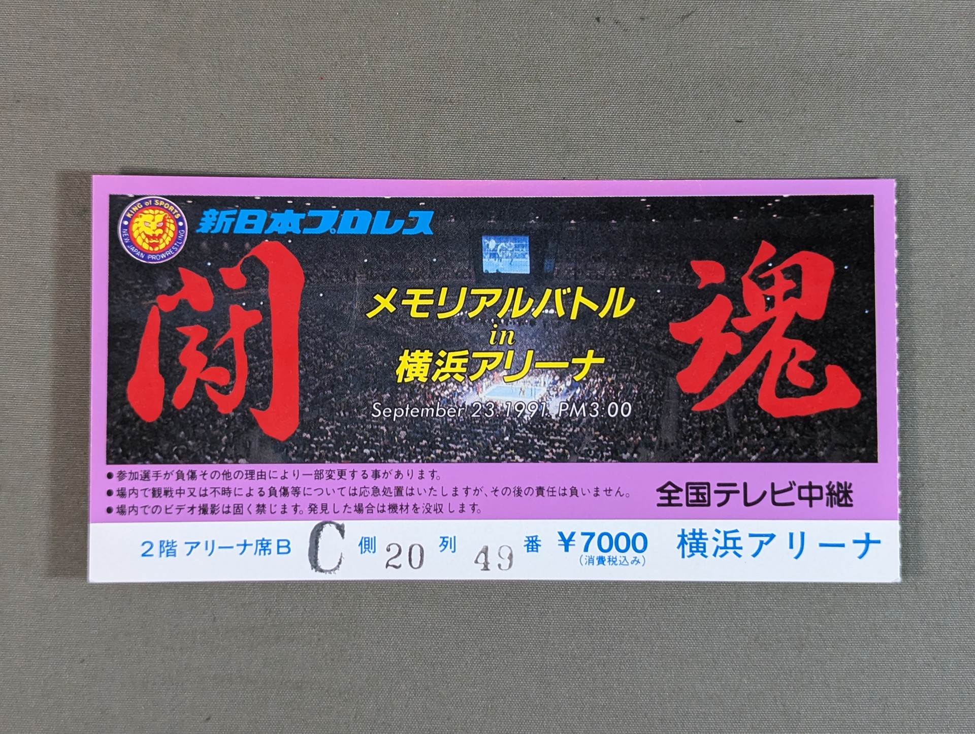 2nd Floor Arena Seat B C Side 20 Row No. 49 / Tatsumi Fujinami vs Great Muta / [Mixed Martial Arts Battle] Shinya Hashimoto vs Tony Home