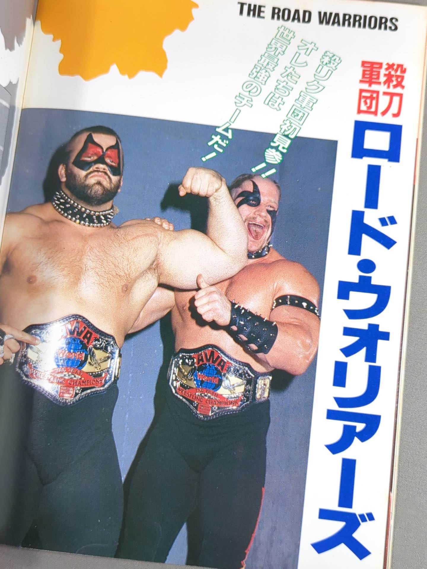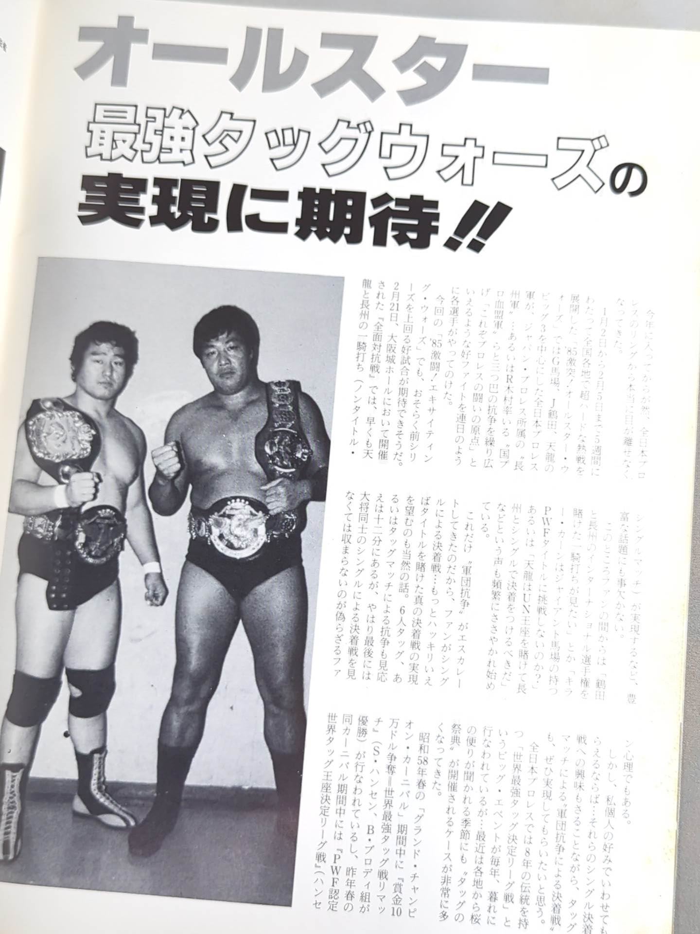 1985 Venue: Ryogoku / stamped with list of matches : International Tag Team fighters Match] Jumbo Tsuruta &Tenryu Genichiro vs The Road Warriors (Hawk & Animal) / Riki Choshu & Yoshiaki Yatsu vs Bruiser Brody & Killer Brooks