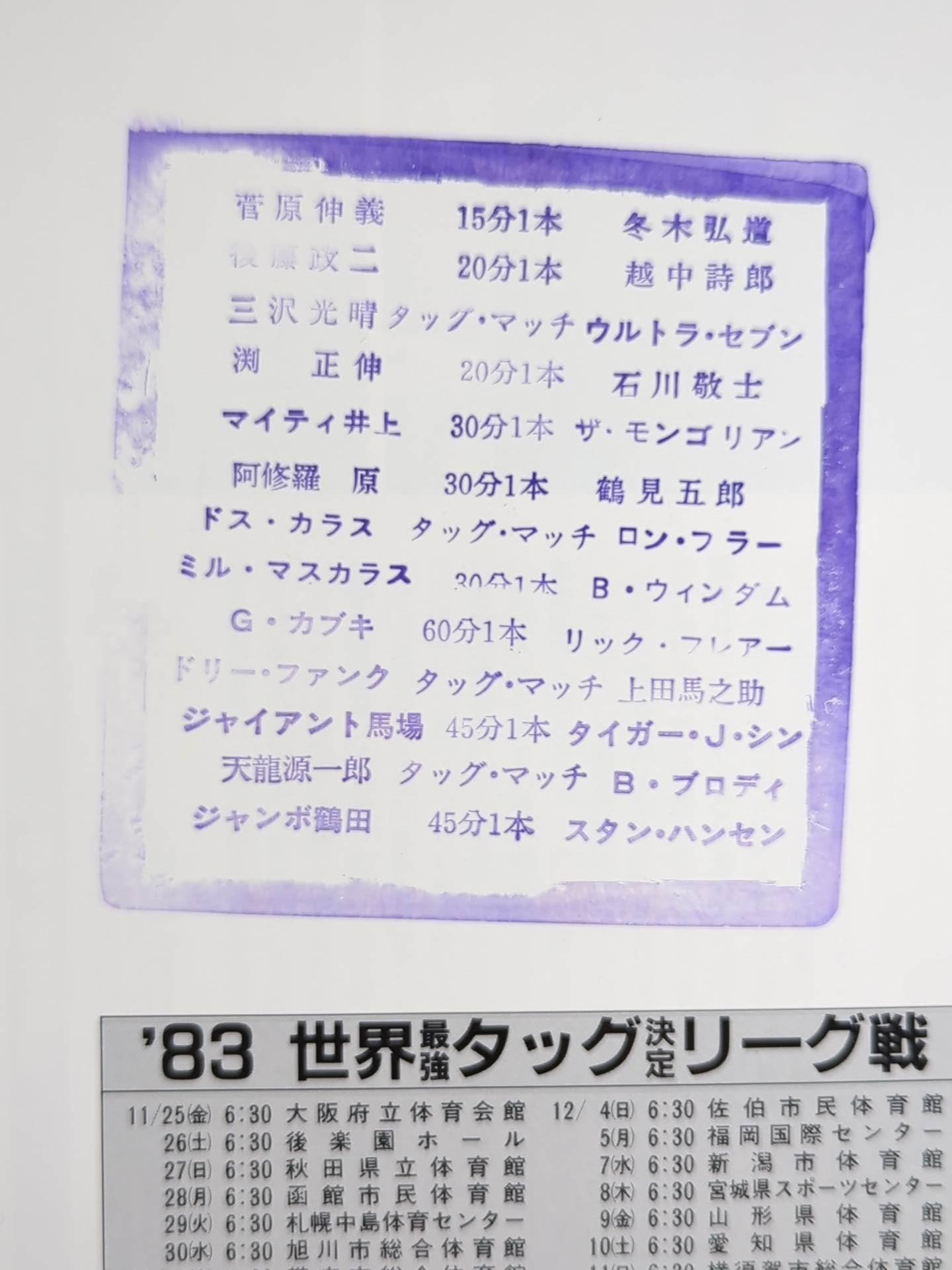 Venue: Kuramae Kokugikan / stamped with list of matches : [Championship match] Tenryu Genichiro & Jumbo Tsuruta vs Bruiser Brody & Stan Hansen / [NWA World Heavyweight Fighters ] Ric Flair vs The Great Kabuki