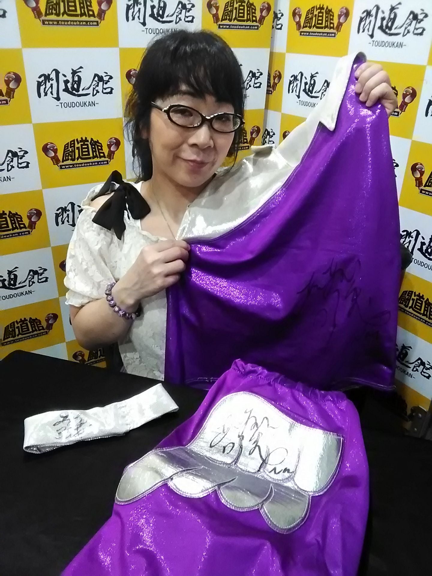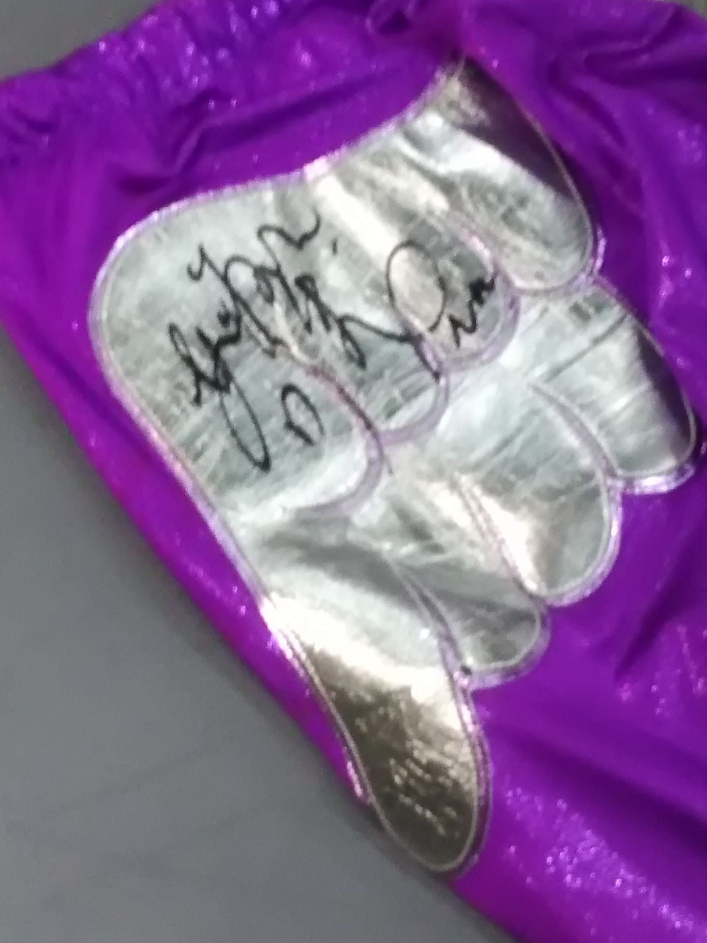 hand signed autograph with photo in hand Purple setup, choker (fabric)