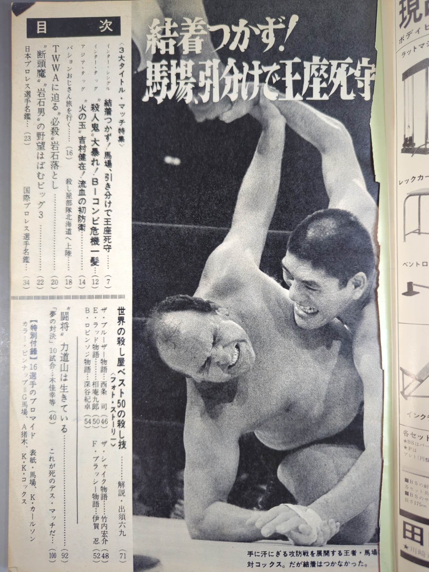 Pro Wrestling photo Pictorial Best 50 Killer Techniques in the World Autumn Camp 3 Title Battle Bulletin! / [Appendix] △ Special Appendix (16) fighters photo or missing) × color pin-up (Giant Baba &Antonio Inoki / Killer Karl Kox )