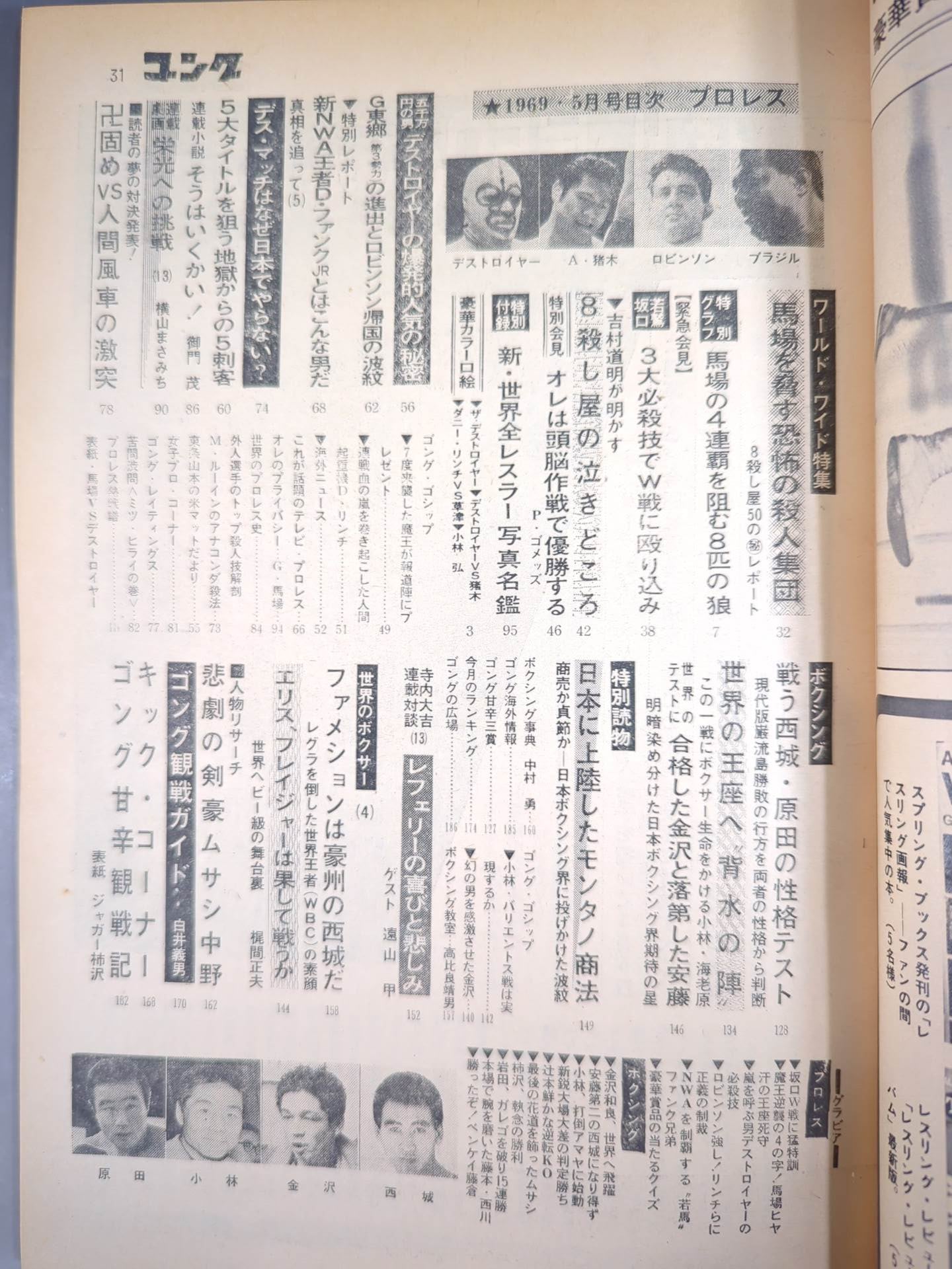 11th W-League Match Outlook / Comprehensive Investigation of Fighting Saijo and Harada / [Appendix] ○ Special Appendix (New World All Wrestler Photos Directory) Cover: Giant Baba vs The Destroyer, Jaguar Kakizawa