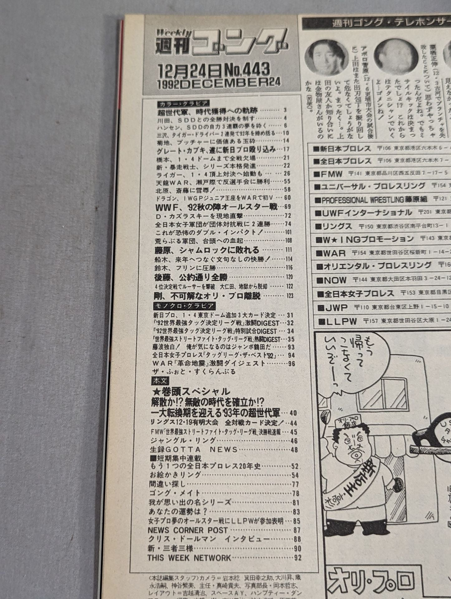 1992 Misawa wins five crowns, Kawada and his long-awaited first victory! ○ Pin-up: The Great Sasuke Cover: Mitsuharu Misawa , Toshiaki Kawada